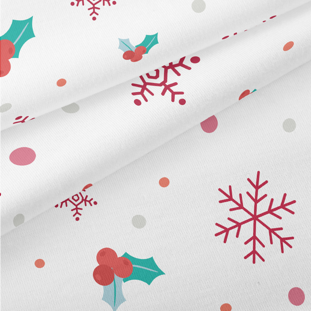 聖誕莓果小雪花仿棉布(幅寬150公分)