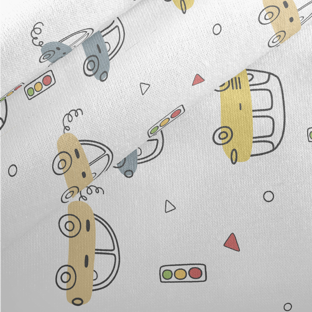 卡通汽車紅綠燈刷毛布(幅寬150公分)