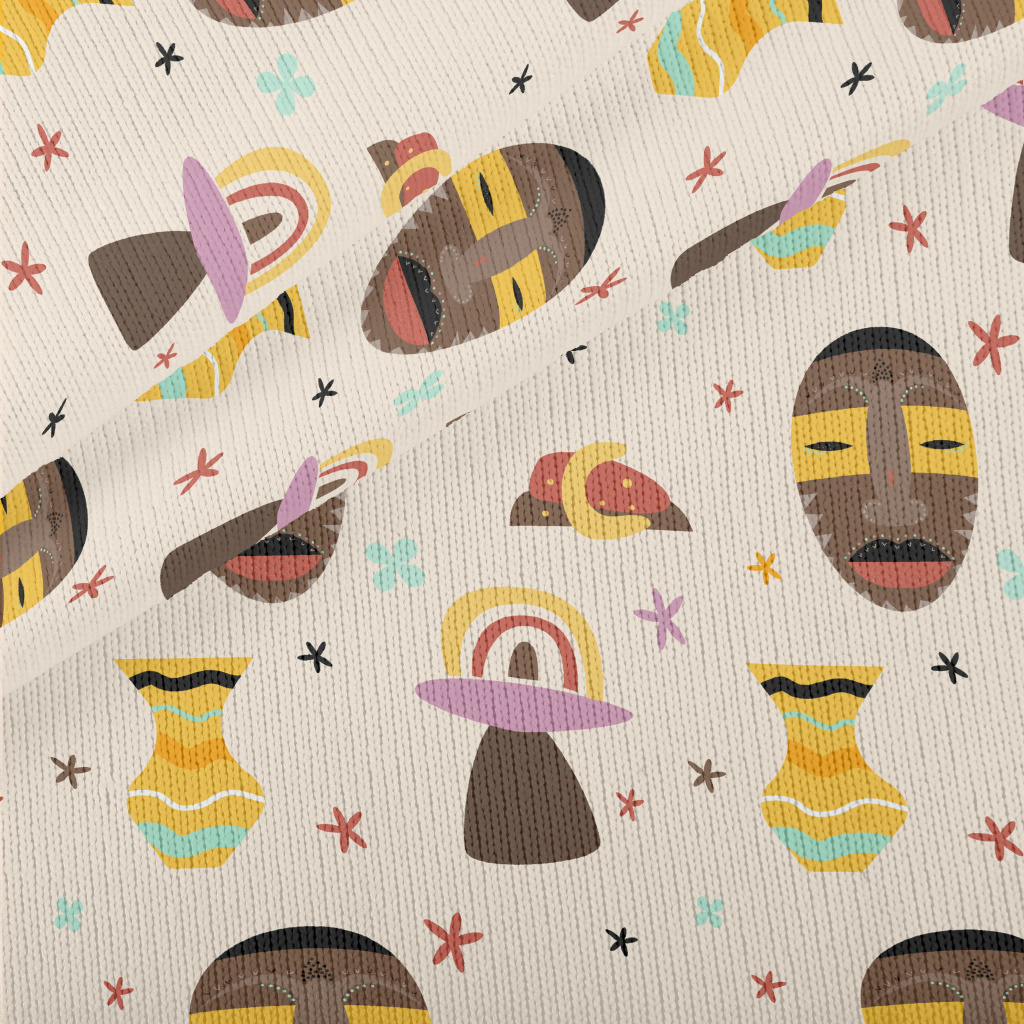 非洲面具花瓶仿毛衣布(幅寬150公分)
