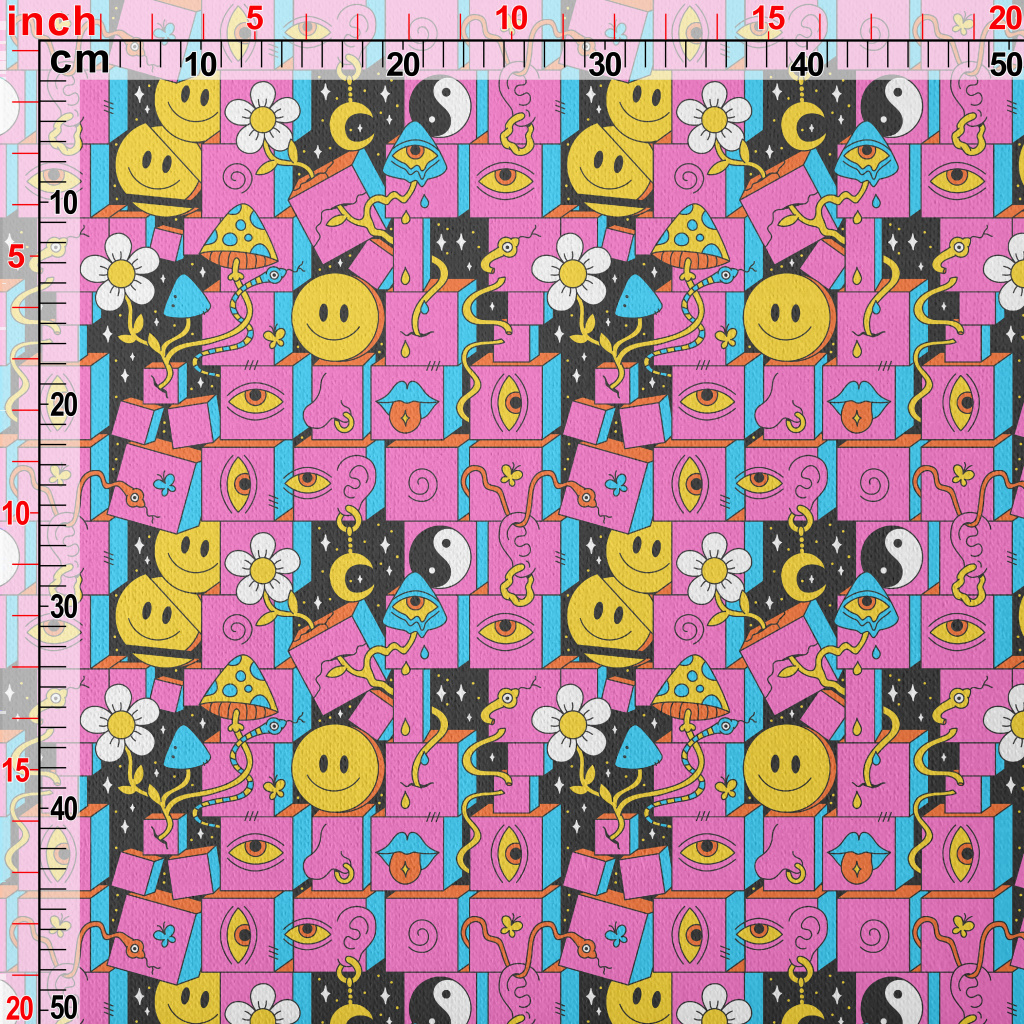 詭異笑臉眼睛耳朵刷毛布(幅寬150公分)