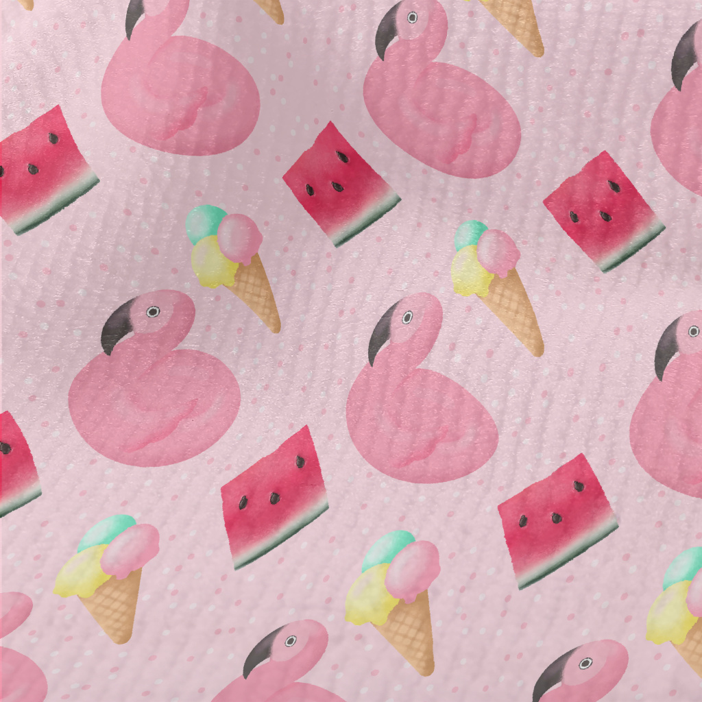 紅鶴與西瓜冰淇淋毛巾布(幅寬160公分)