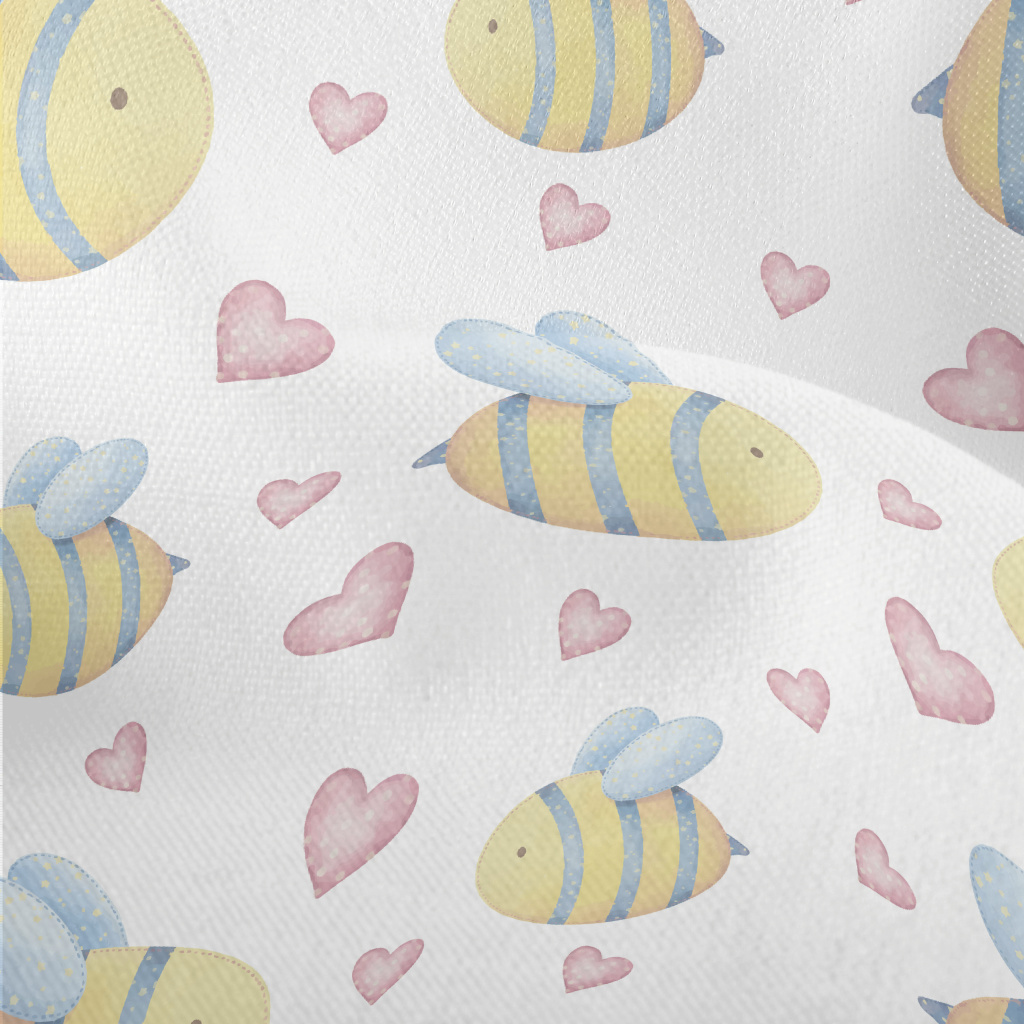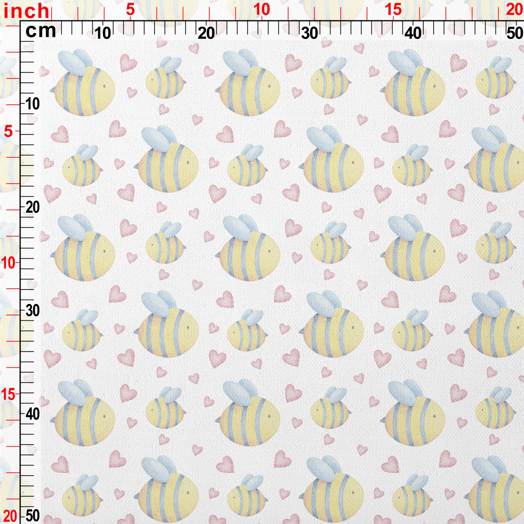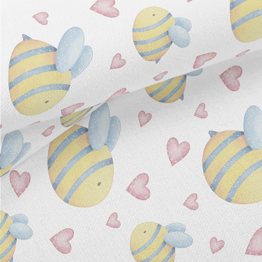 愛心水彩小蜜蜂竹節麻(幅寬150公分)