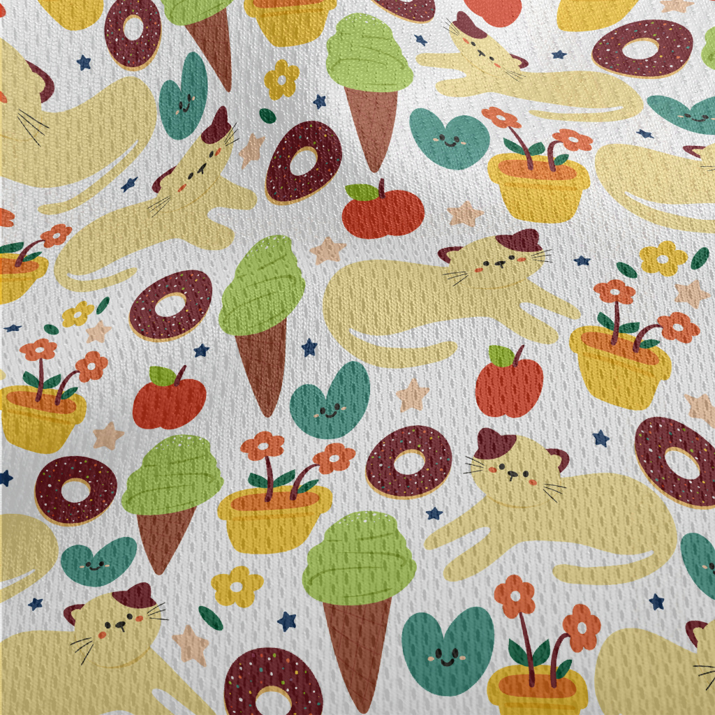 貓咪甜甜圈冰淇淋鳥眼布(幅寬160公分)