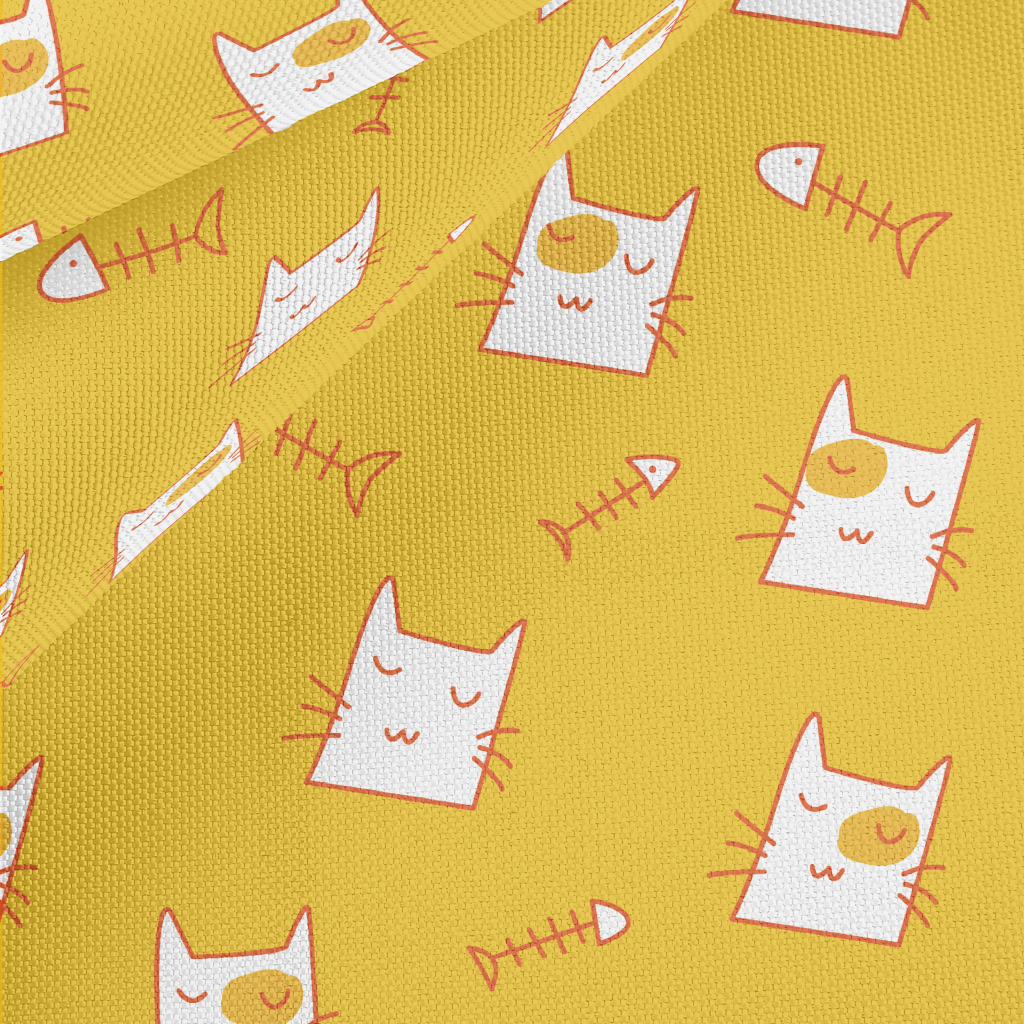 閉眼貓咪魚骨頭牛津布(幅寬150公分)
