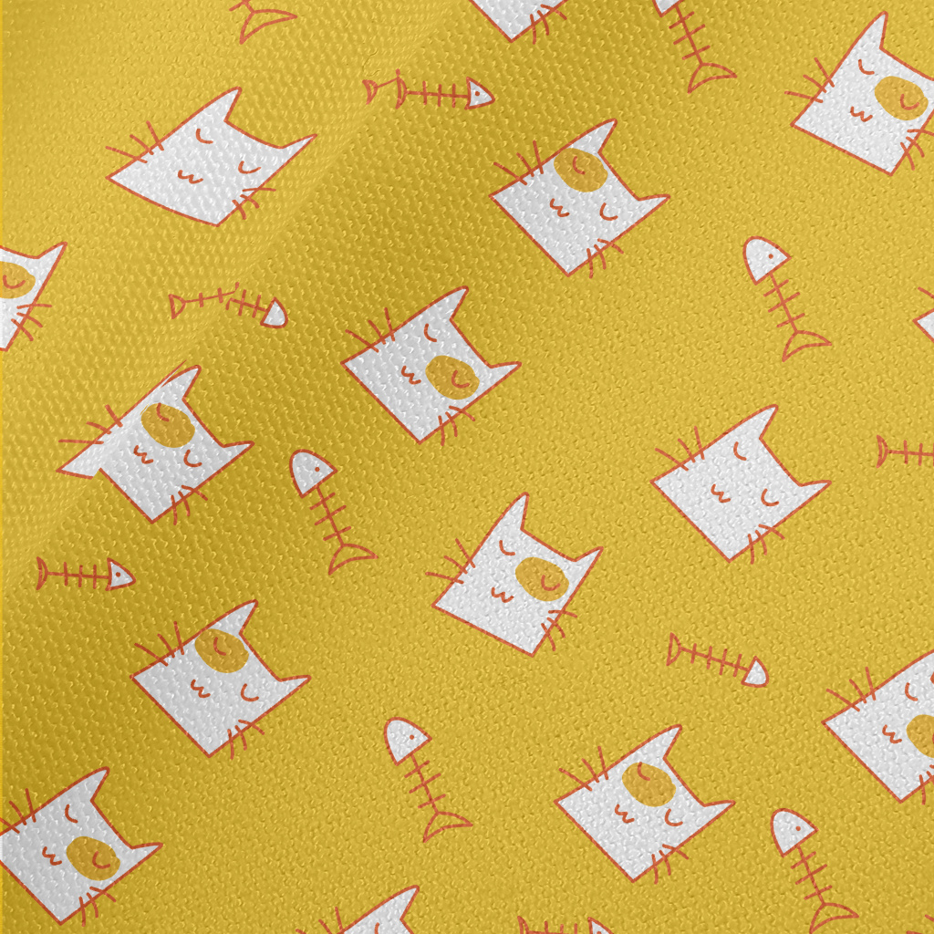 閉眼貓咪魚骨頭帆布(幅寬150公分)