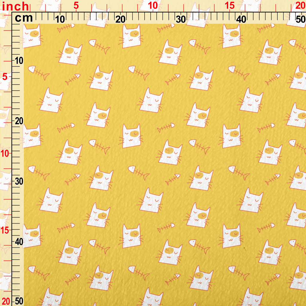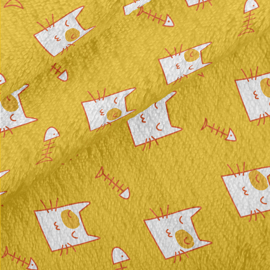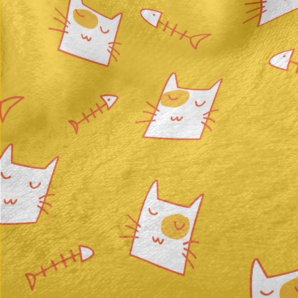 閉眼貓咪魚骨頭法蘭絨(幅寬150公分)