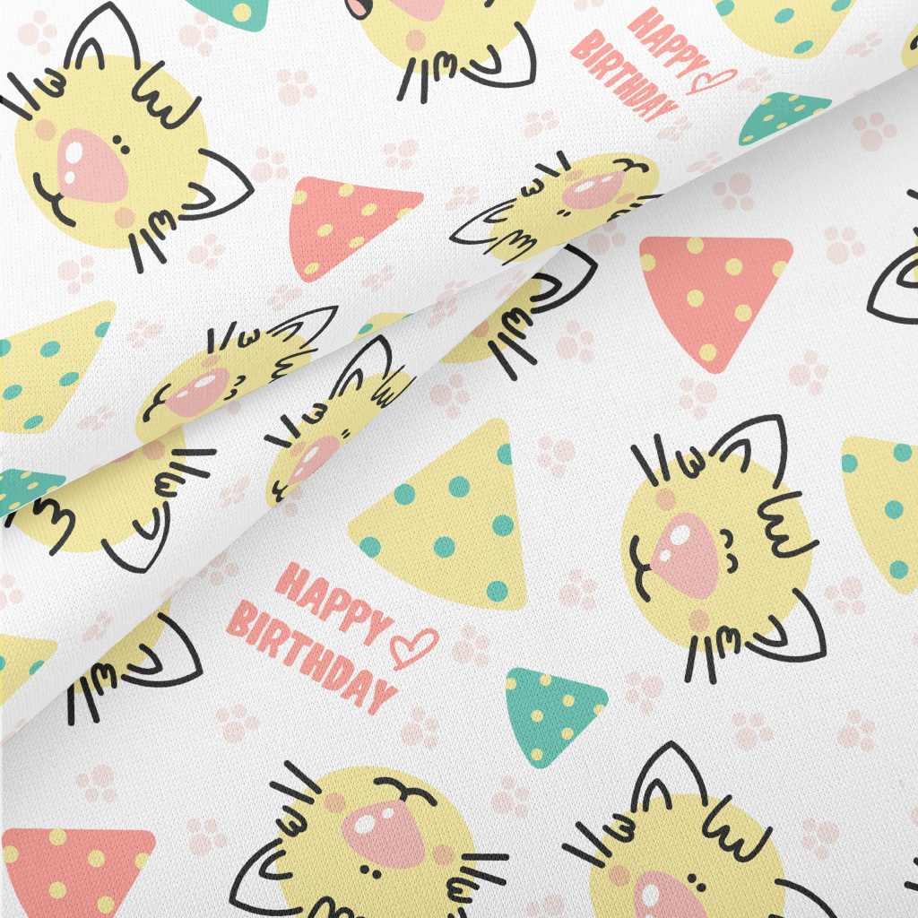 卡通貓生日快樂薄棉布(幅寬150公分)