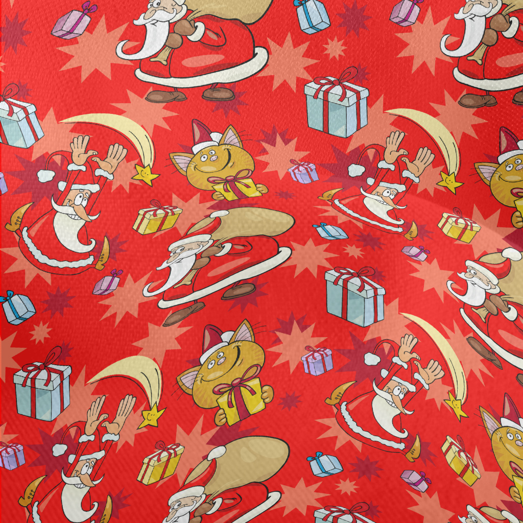 調皮聖誕老公公竹節麻(幅寬150公分)