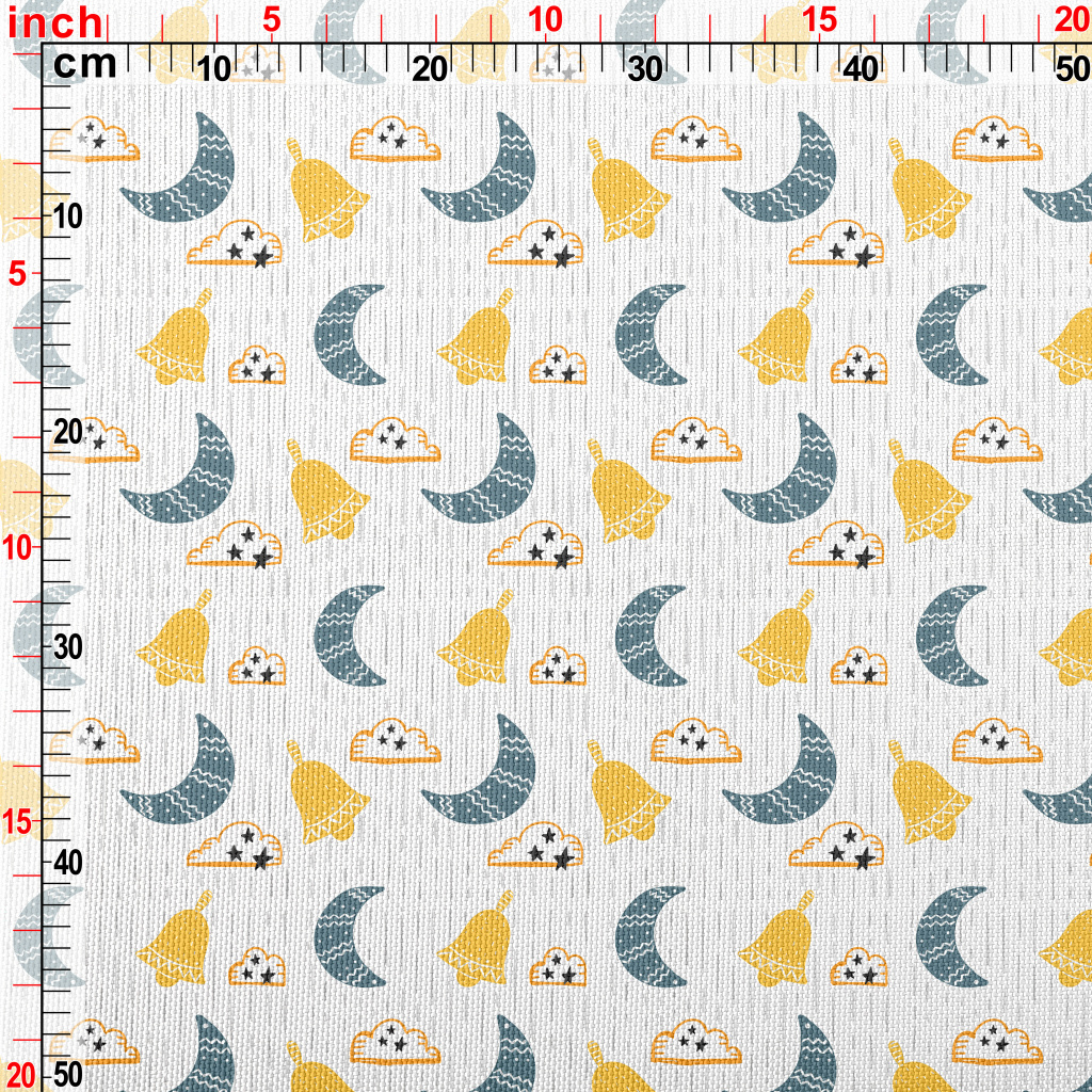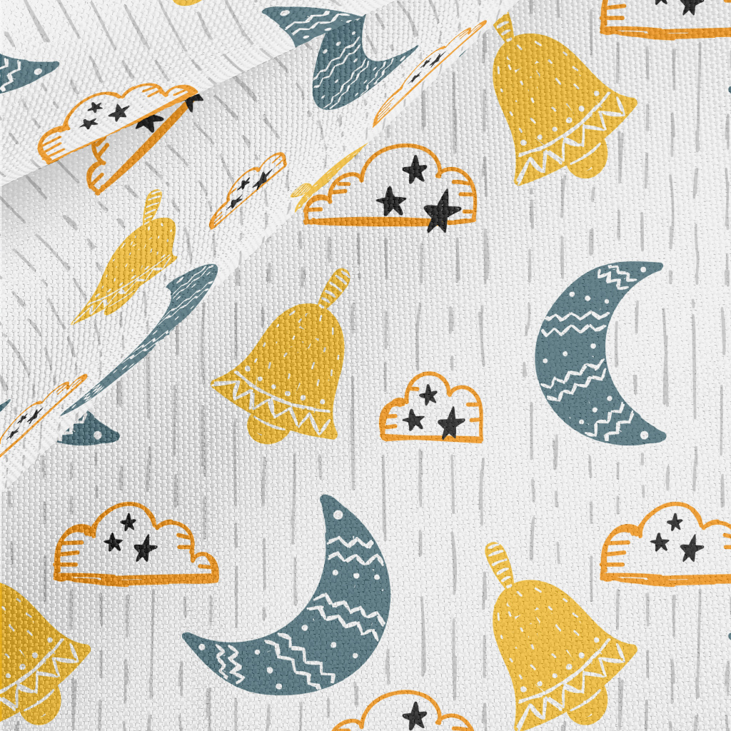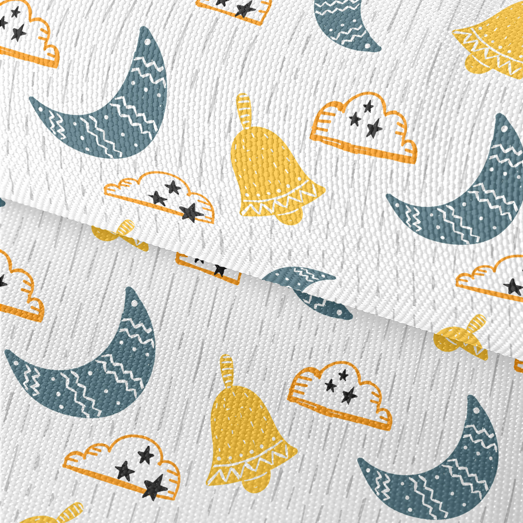 卡通塗鴉彎月雲朵牛津布(幅寬150公分)