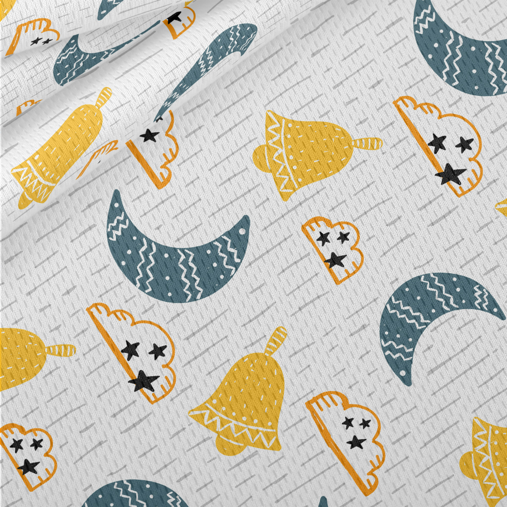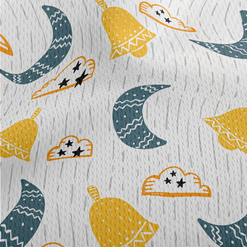 卡通塗鴉彎月雲朵鳥眼布(幅寬160公分)