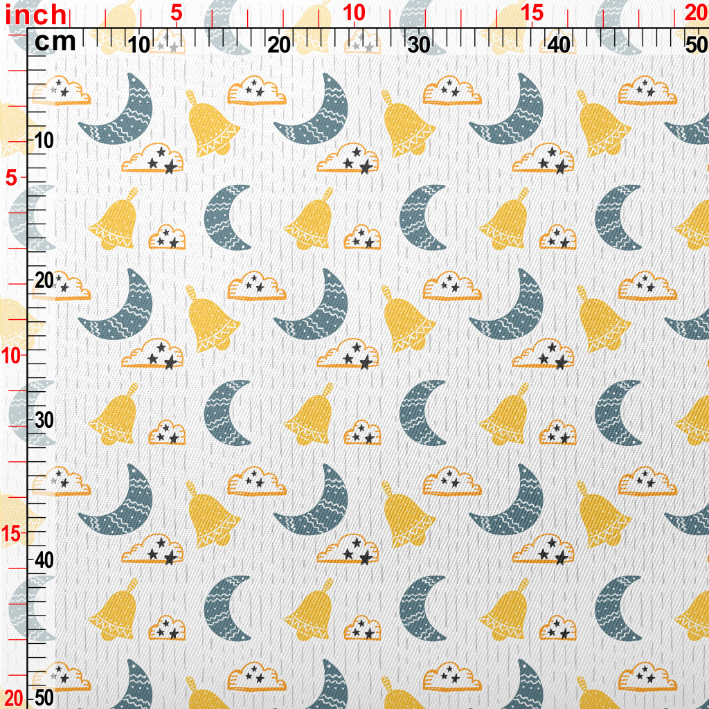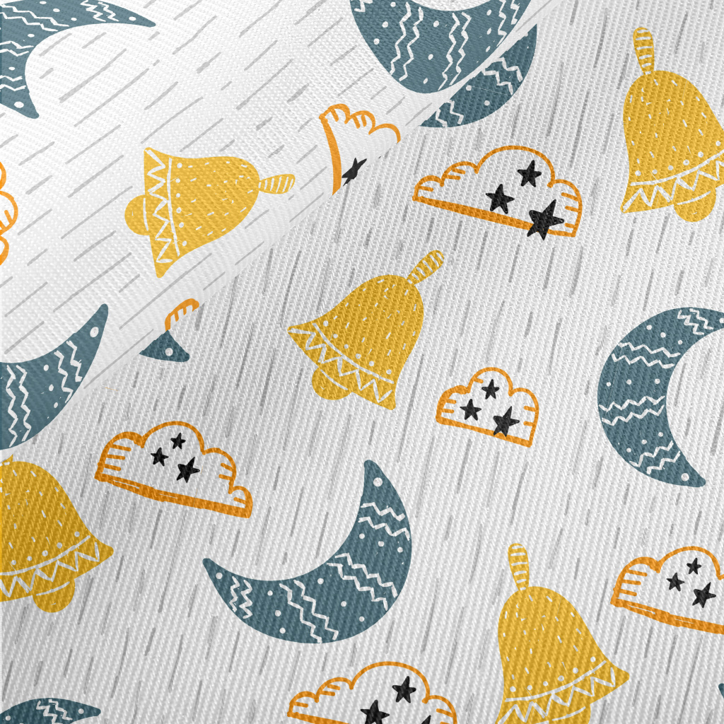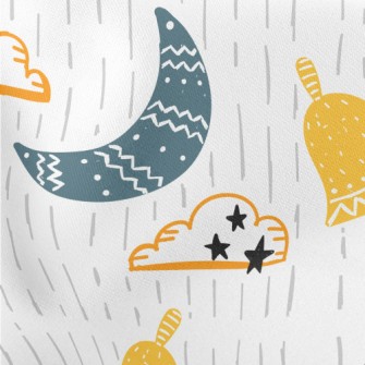卡通塗鴉彎月雲朵斜紋布(幅寬150公分)