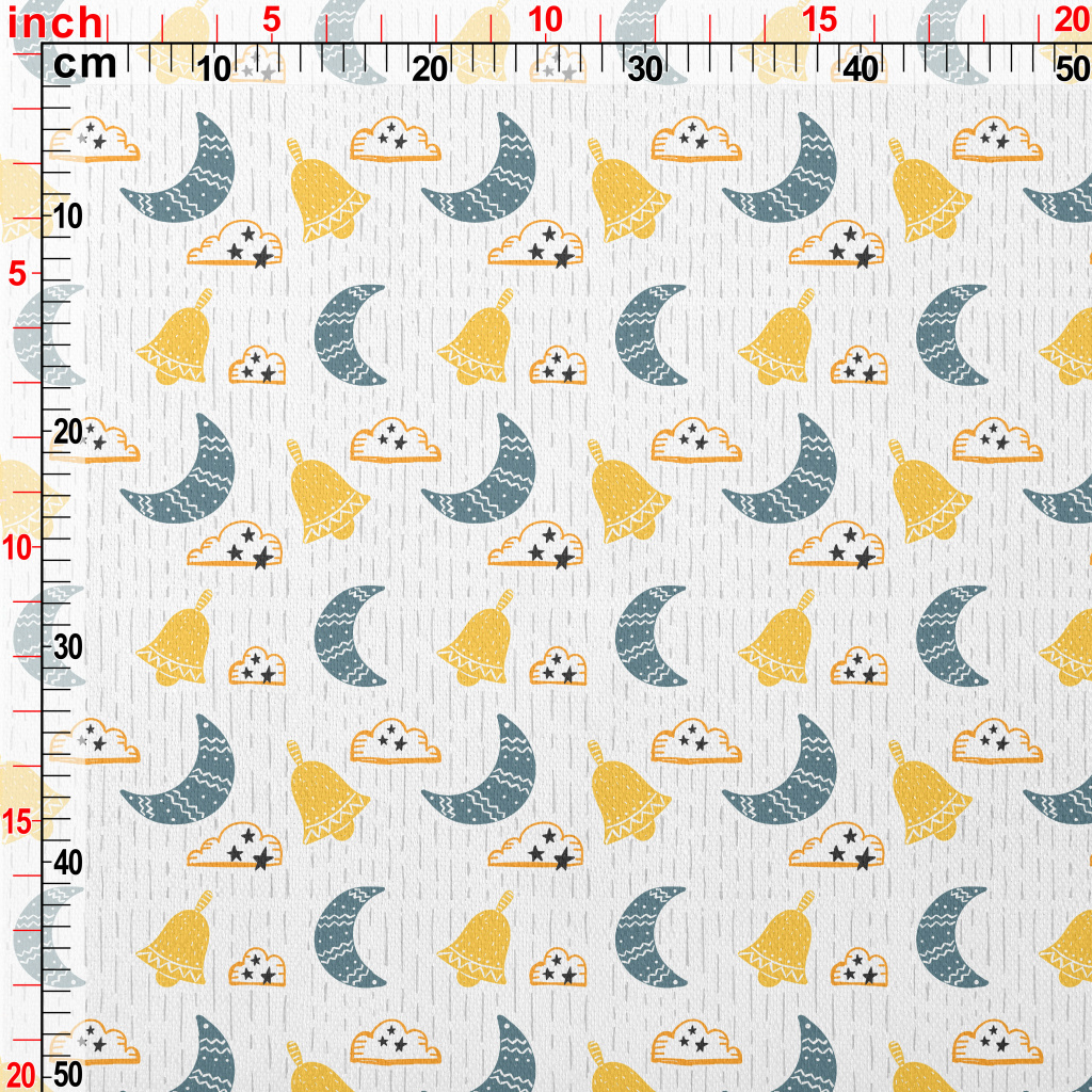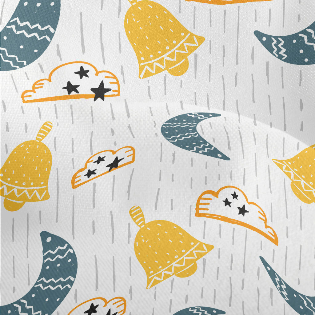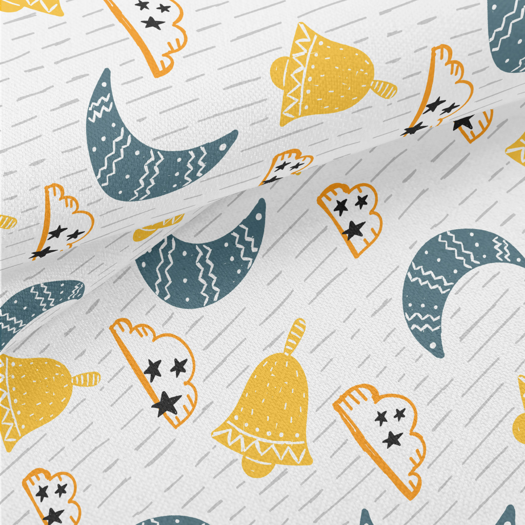 卡通塗鴉彎月雲朵竹節麻(幅寬150公分)