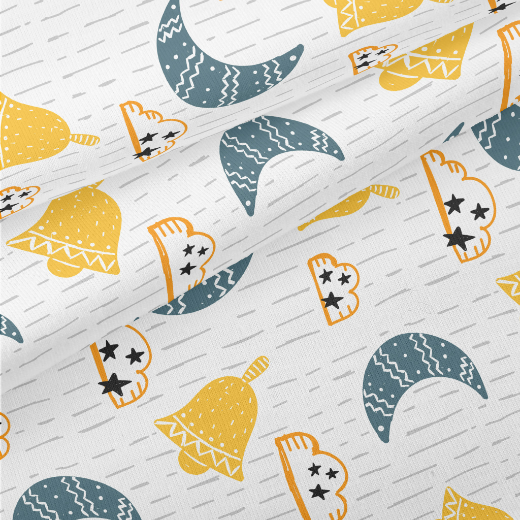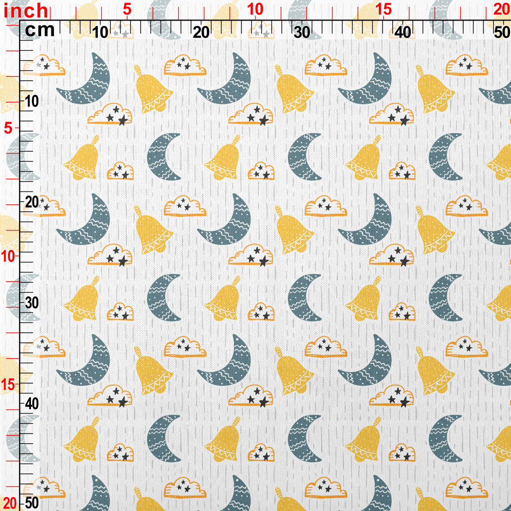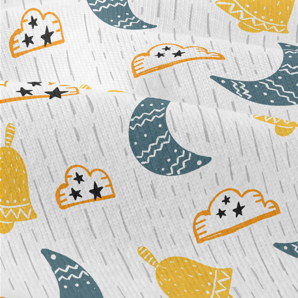卡通塗鴉彎月雲朵仿棉布(幅寬150公分)