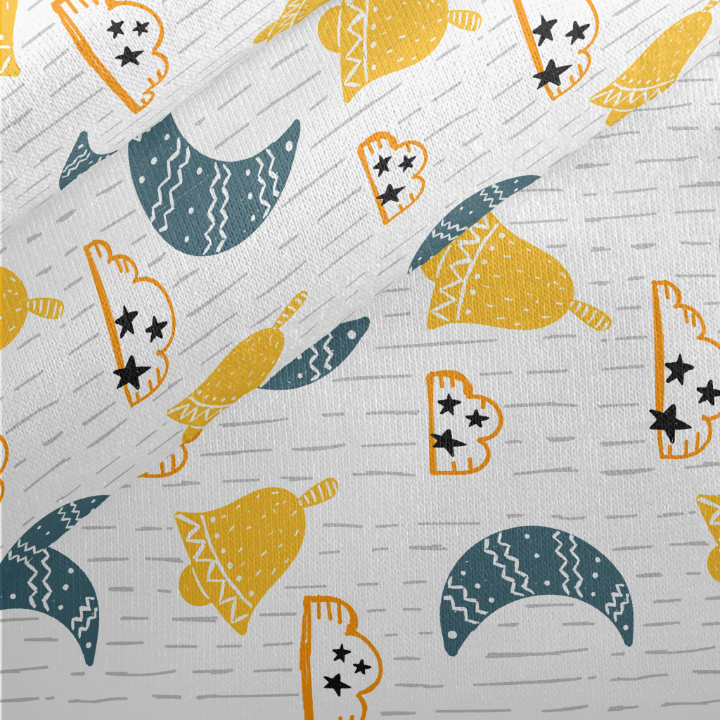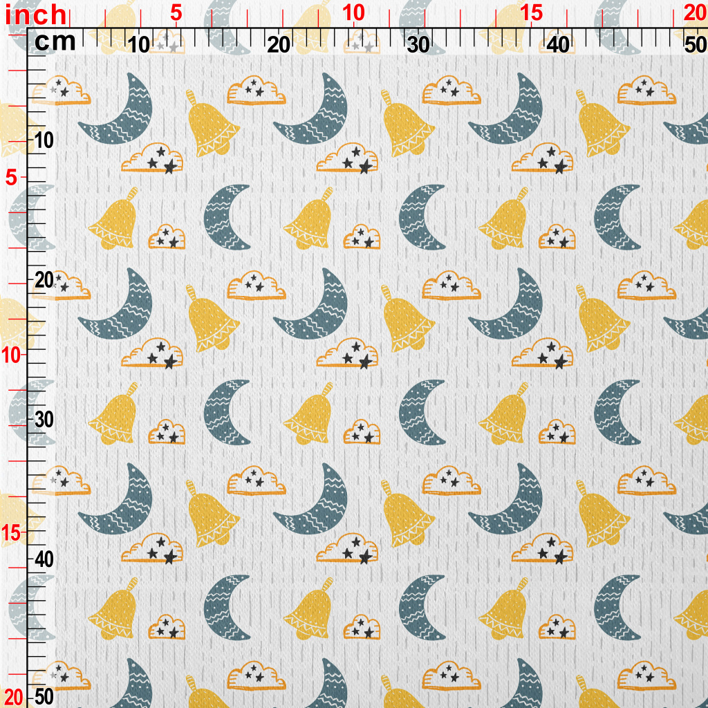 卡通塗鴉彎月雲朵刷毛布(幅寬150公分)