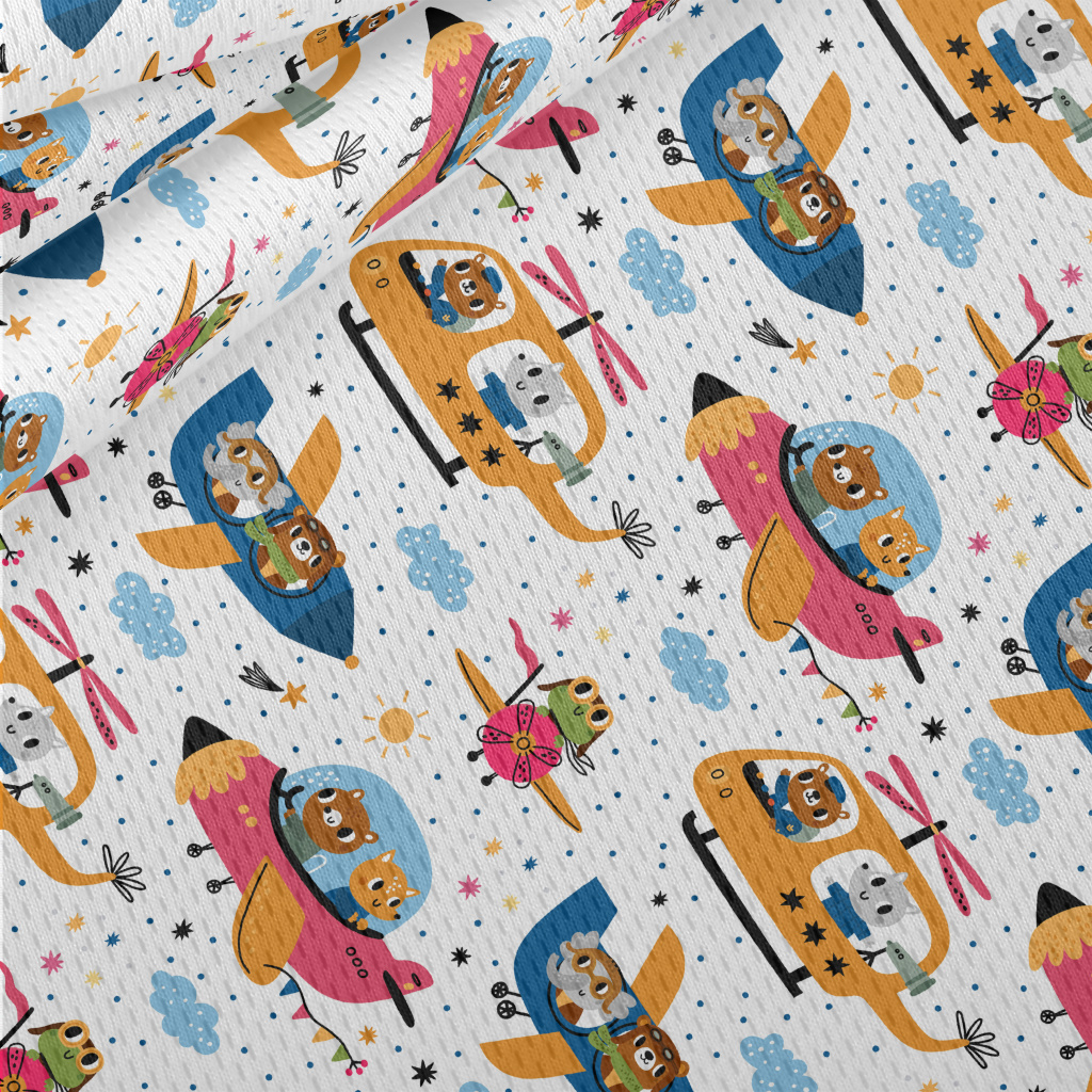 動物開飛機直升機鳥眼布(幅寬160公分)