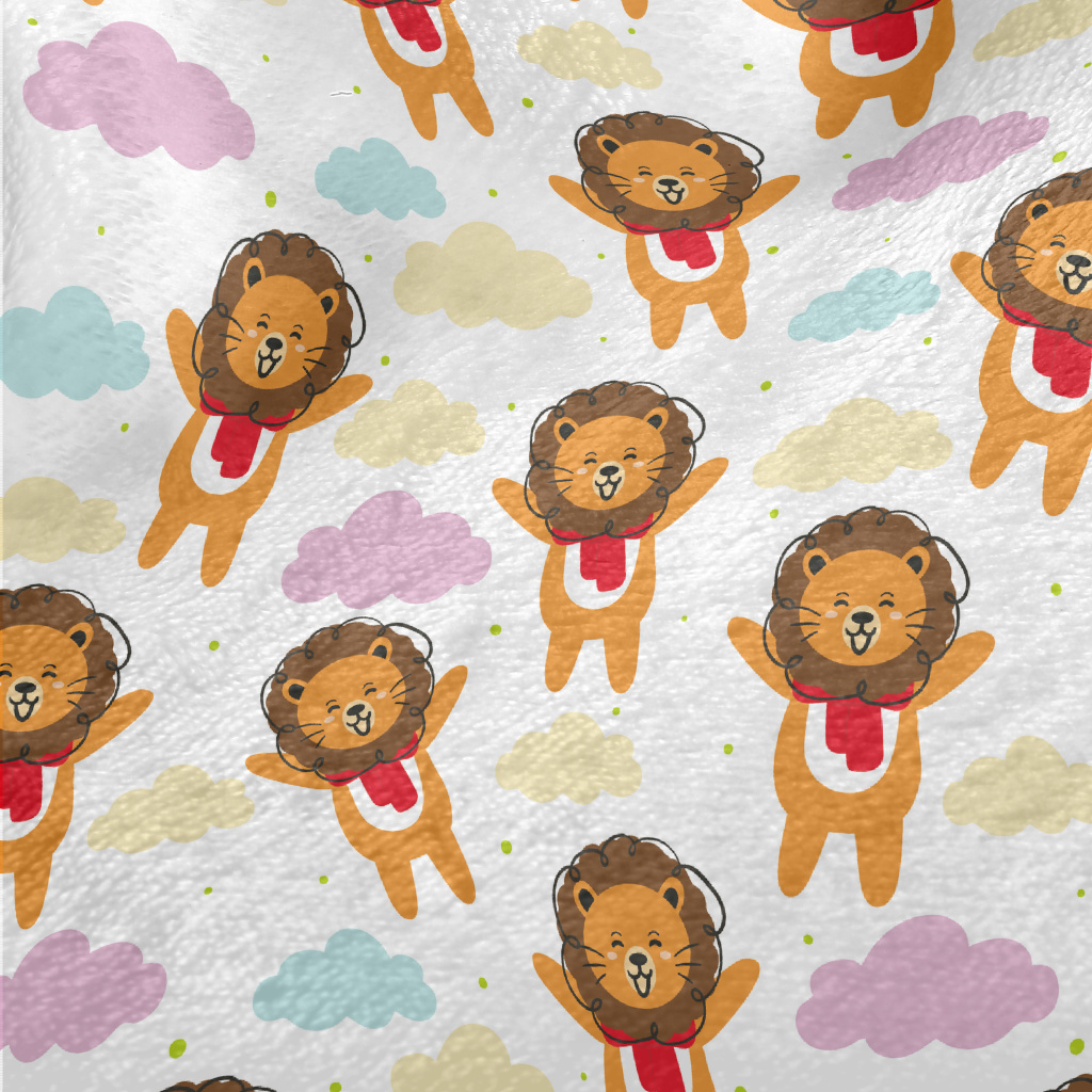 歡樂獅子雲朵法蘭絨(幅寬150公分)