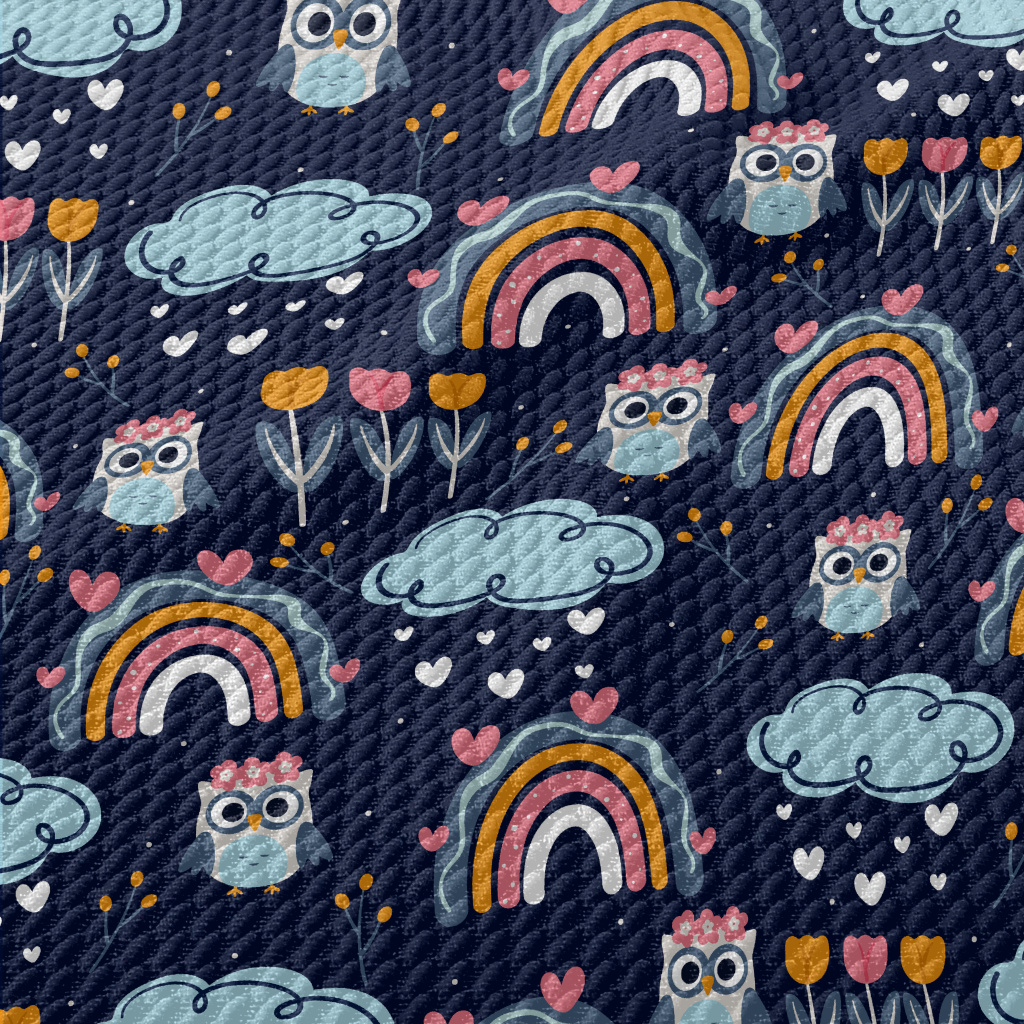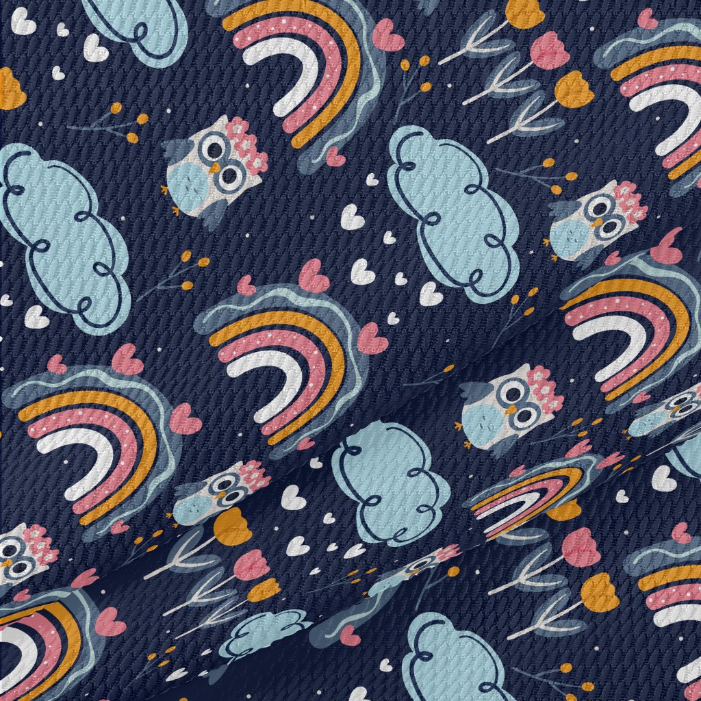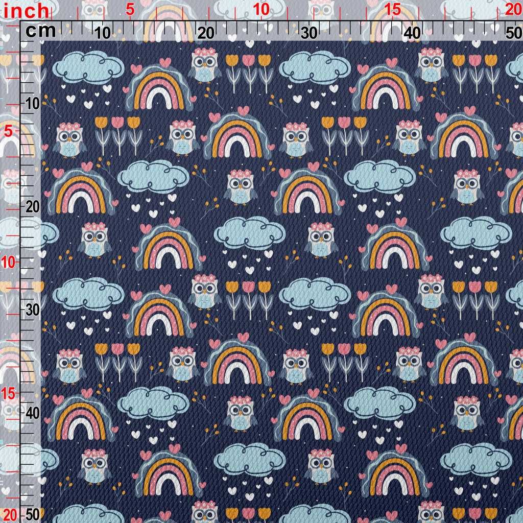 彩虹花朵貓頭鷹泡泡布(幅寬160公分)