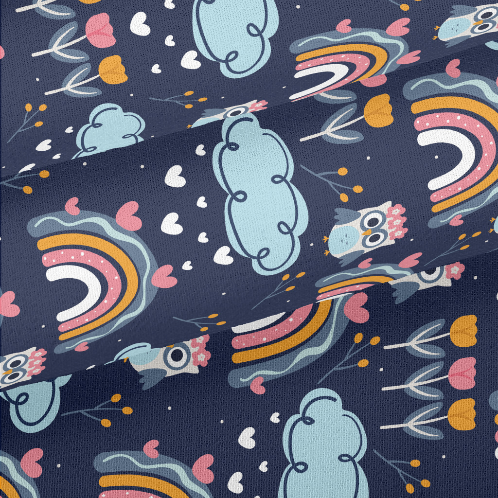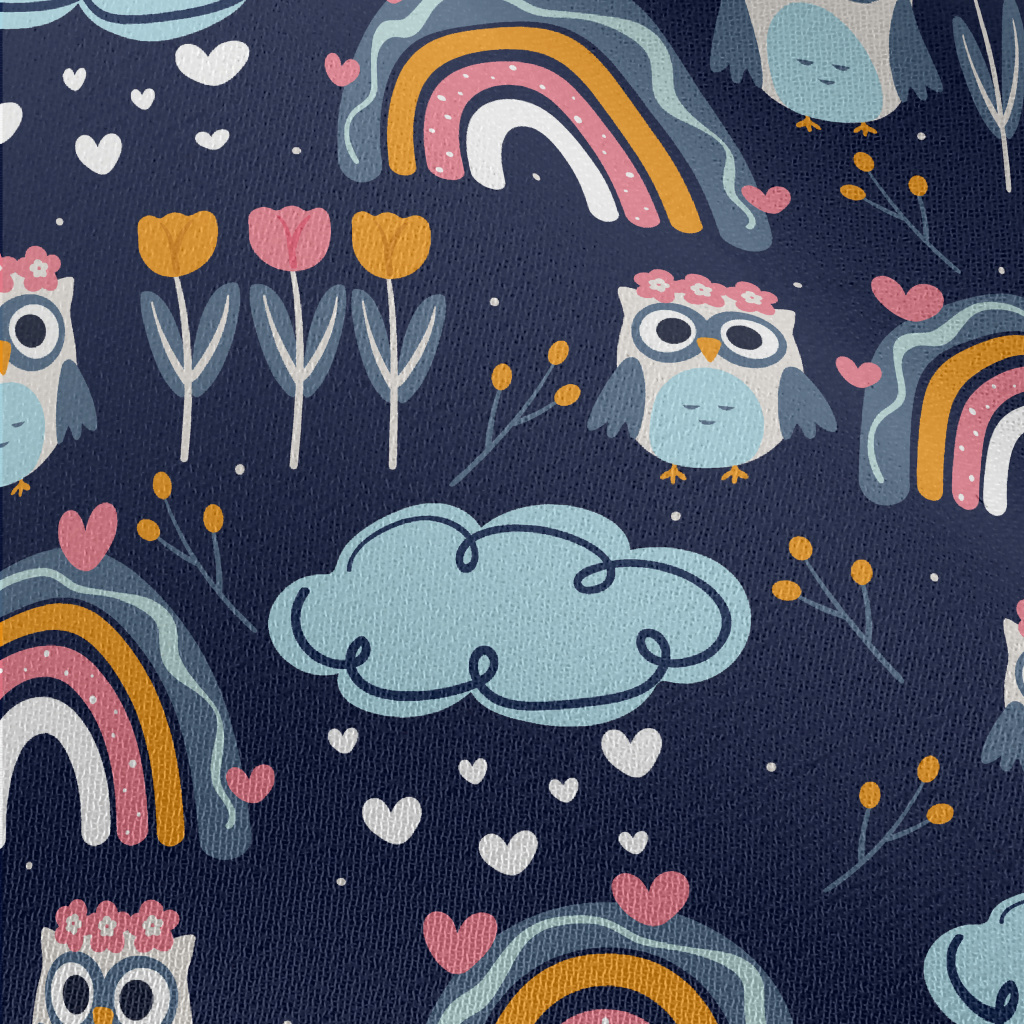 彩虹花朵貓頭鷹雪紡布(幅寬150公分)
