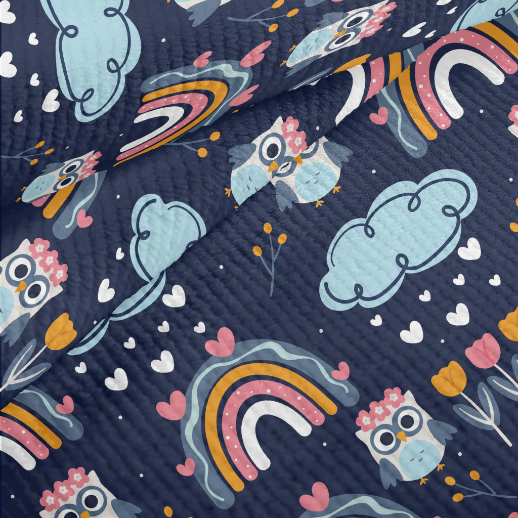 彩虹花朵貓頭鷹毛巾布(幅寬160公分)