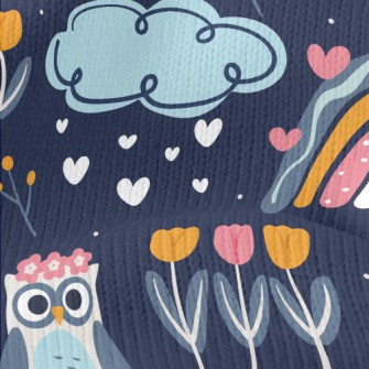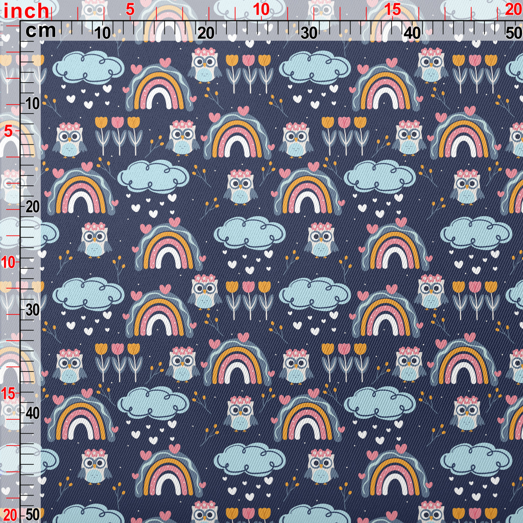 彩虹花朵貓頭鷹斜紋布(幅寬150公分)