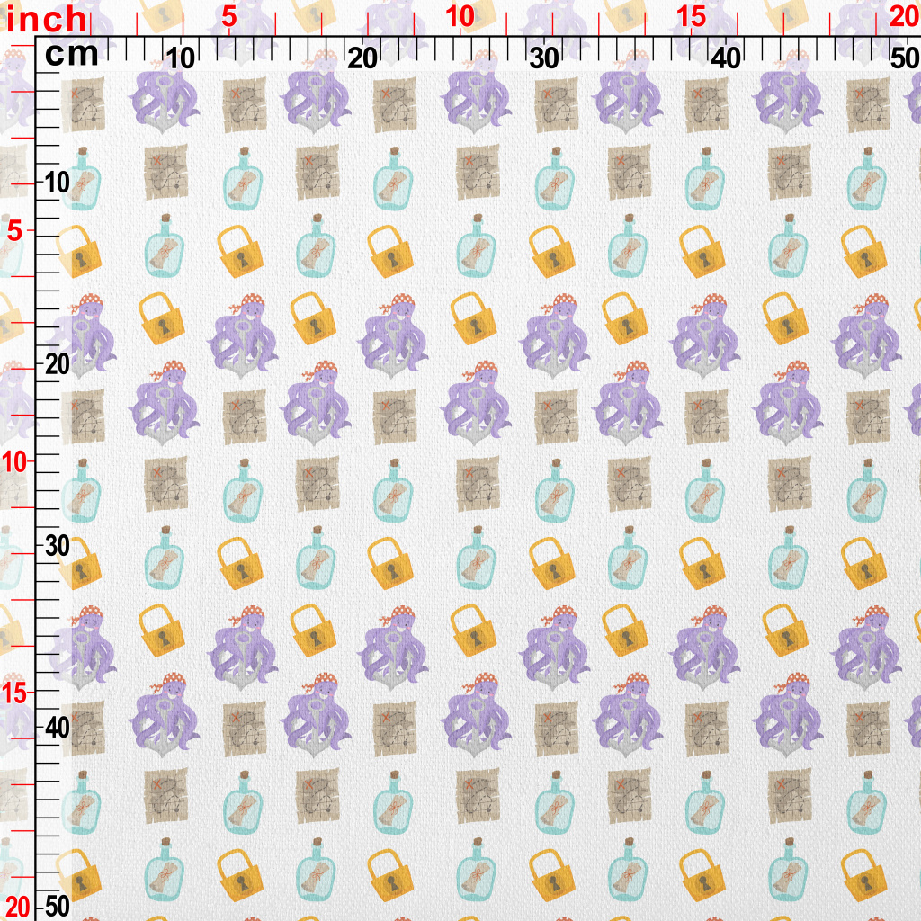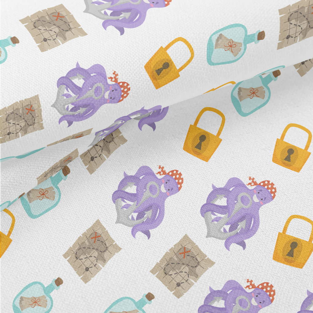 章魚海盜藏寶圖竹節麻(幅寬150公分)