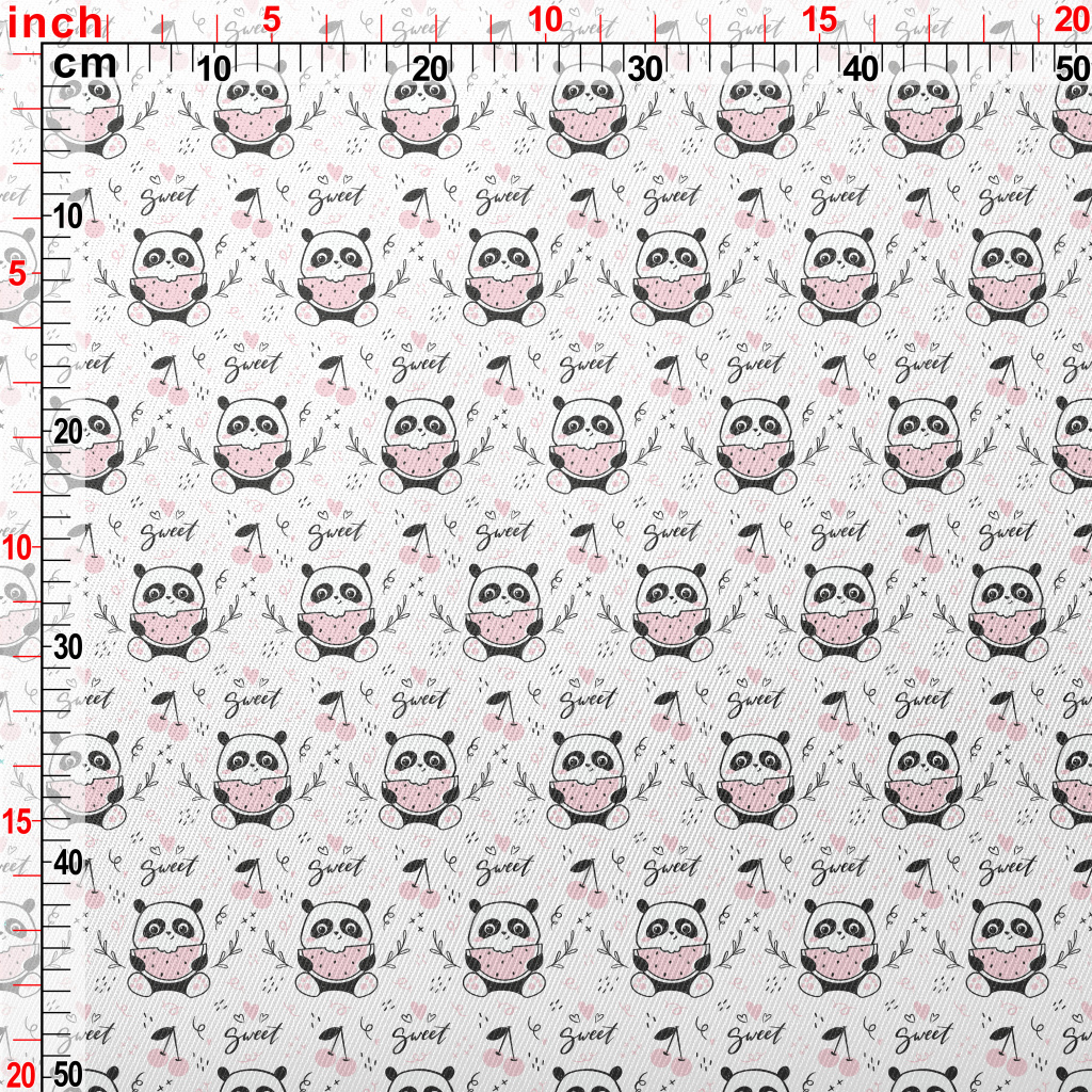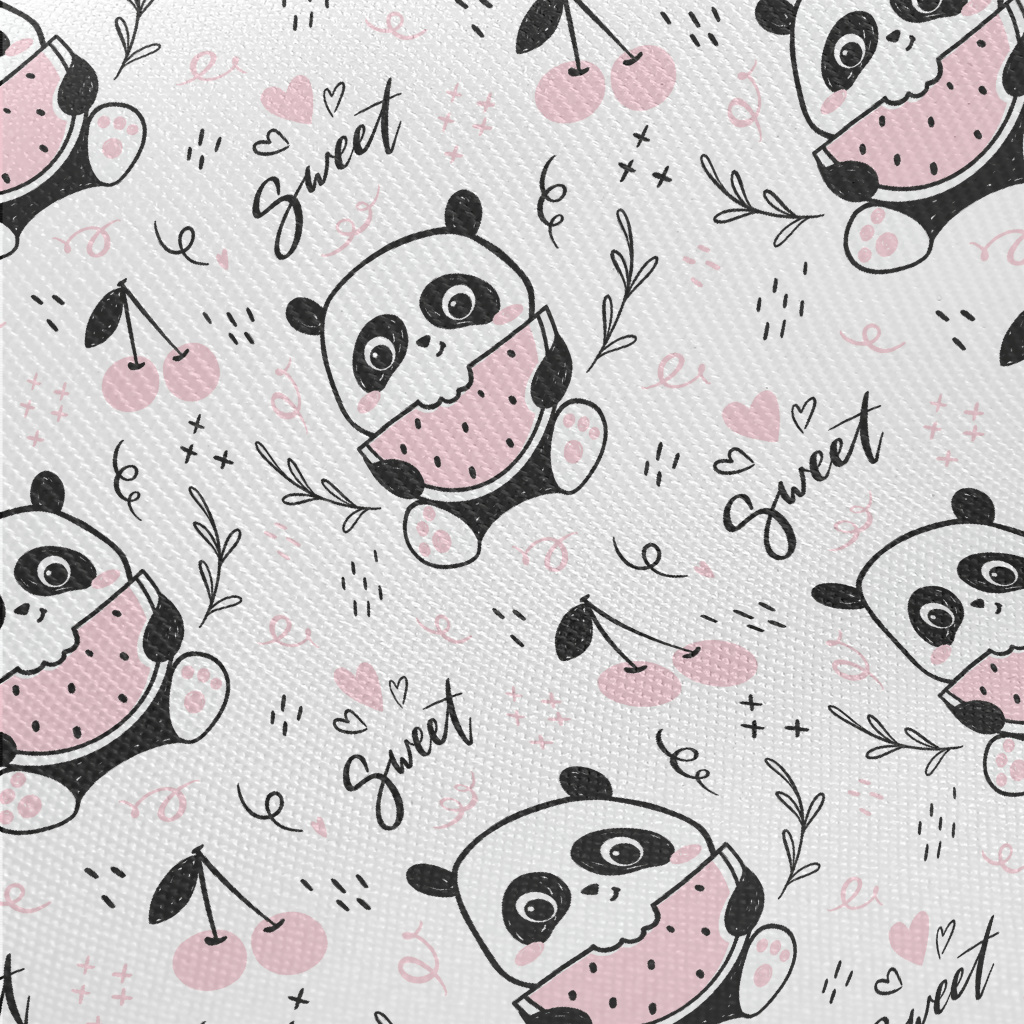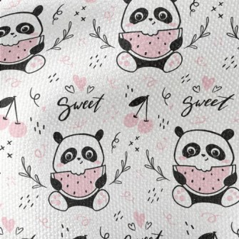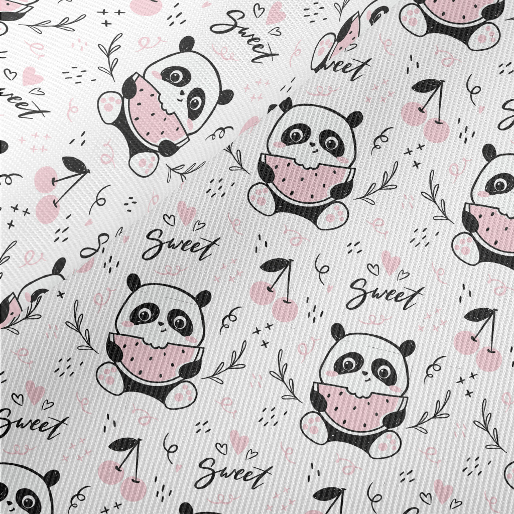 可愛吃西瓜貓熊斜紋布(幅寬150公分)