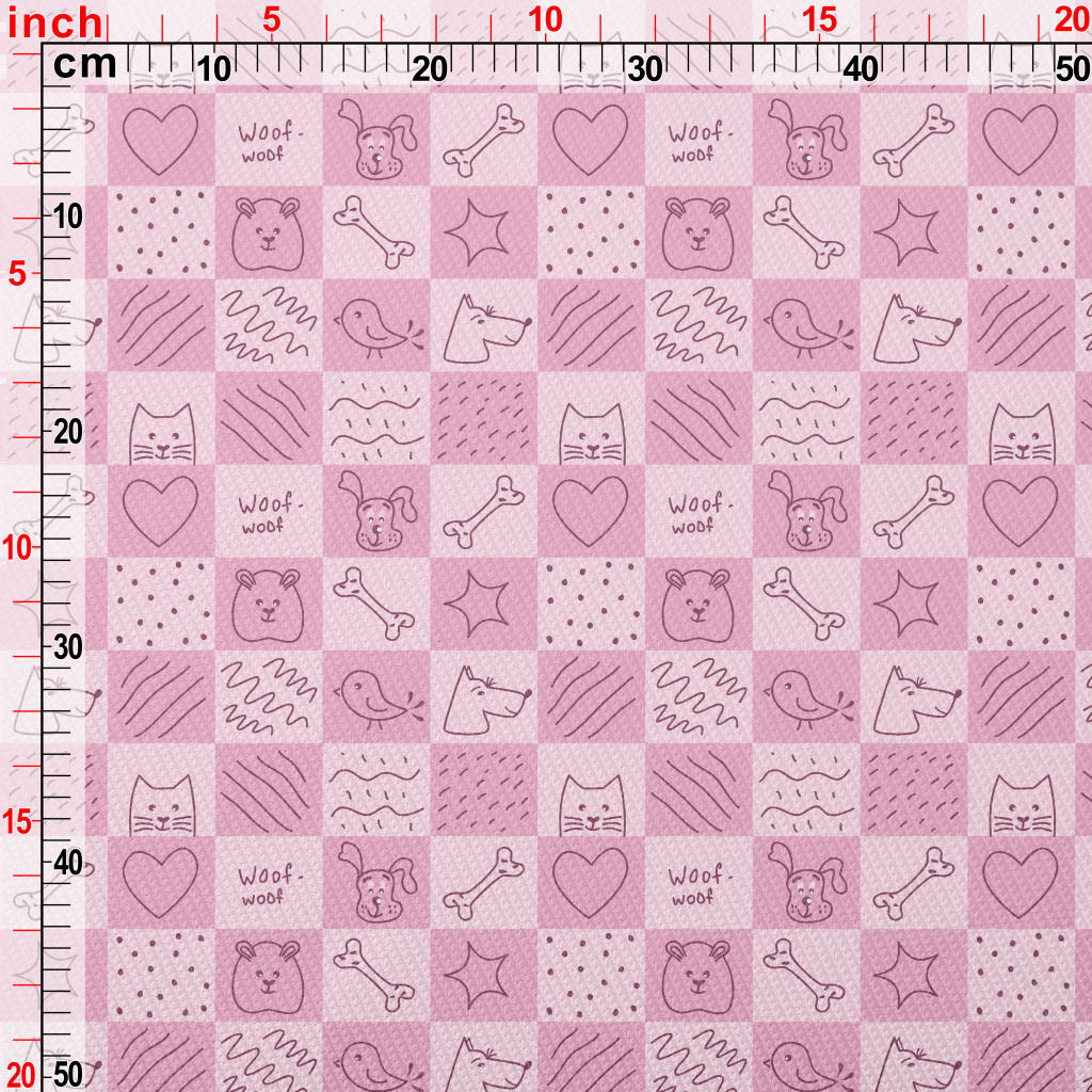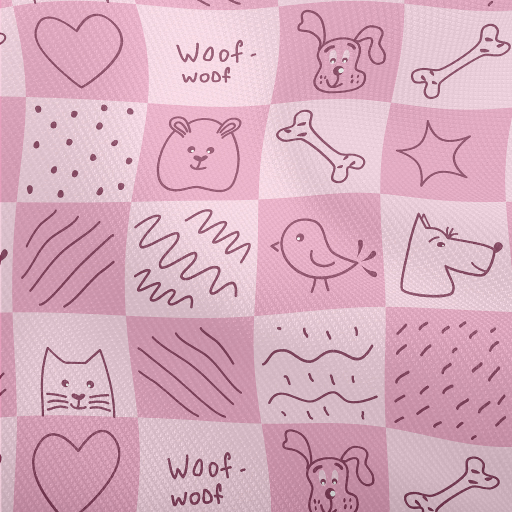 格子貓狗小鳥雙斜布(幅寬150公分)