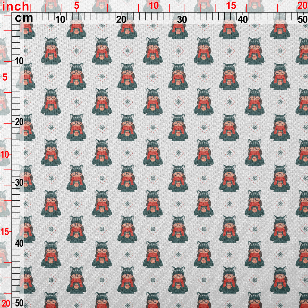 可愛貓毛帽女孩鳥眼布(幅寬160公分)
