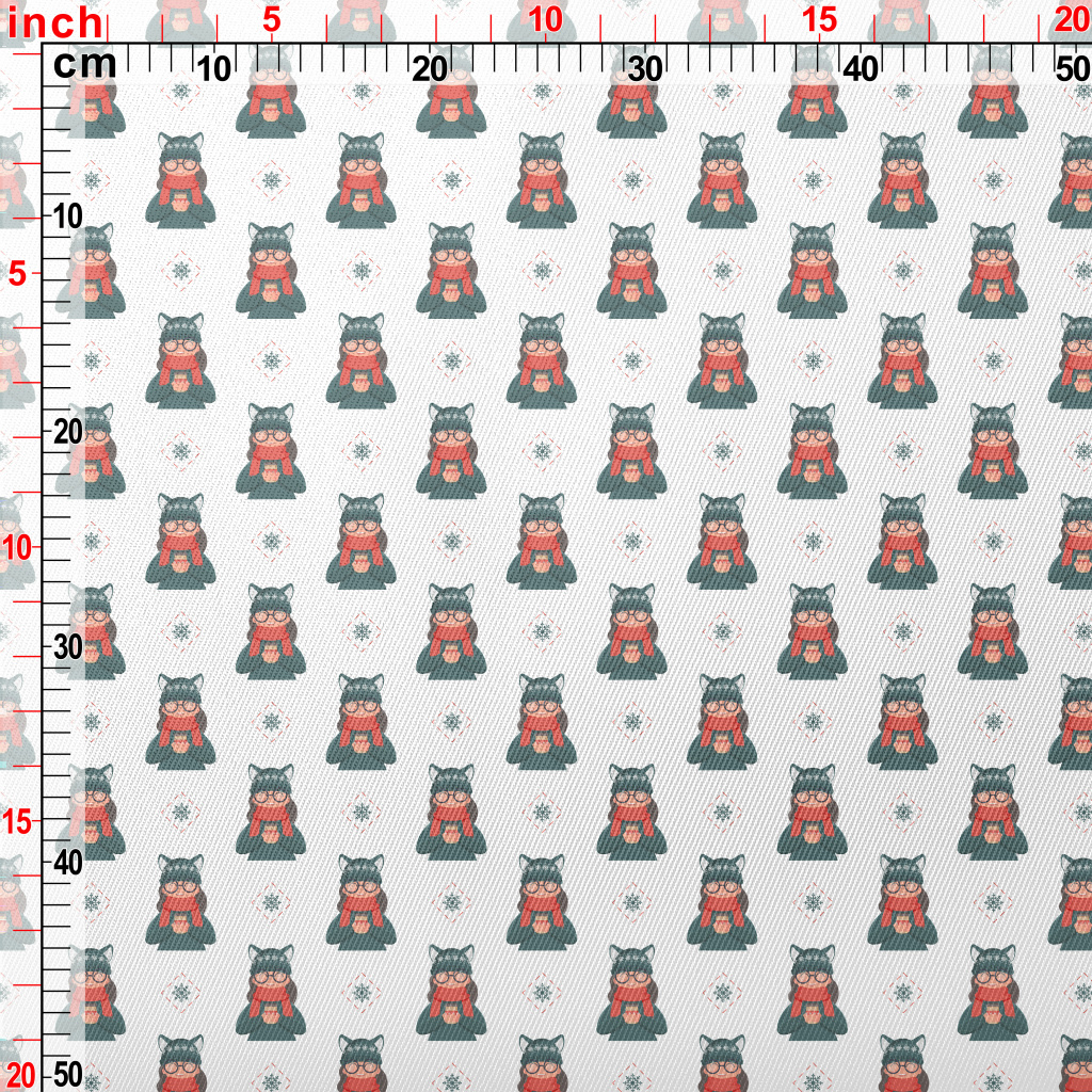 可愛貓毛帽女孩厚棉布(幅寬150公分)