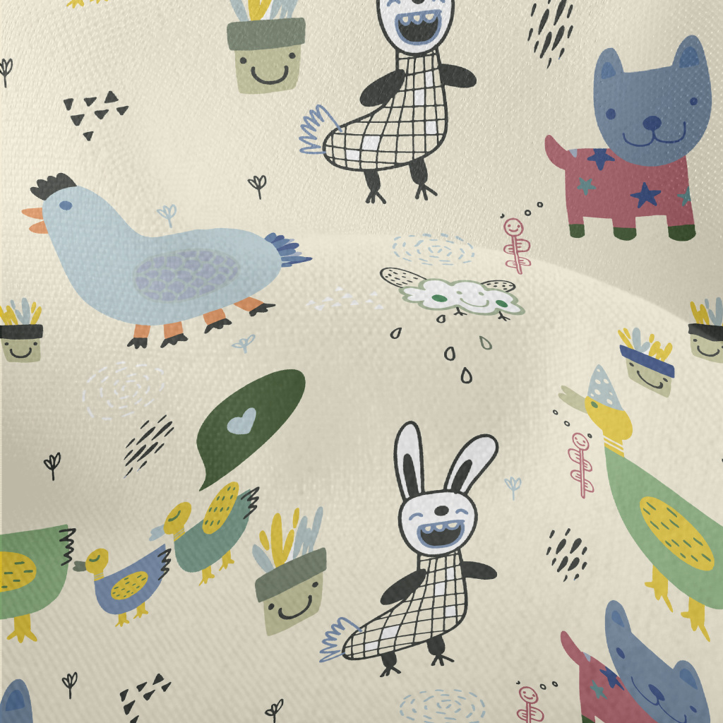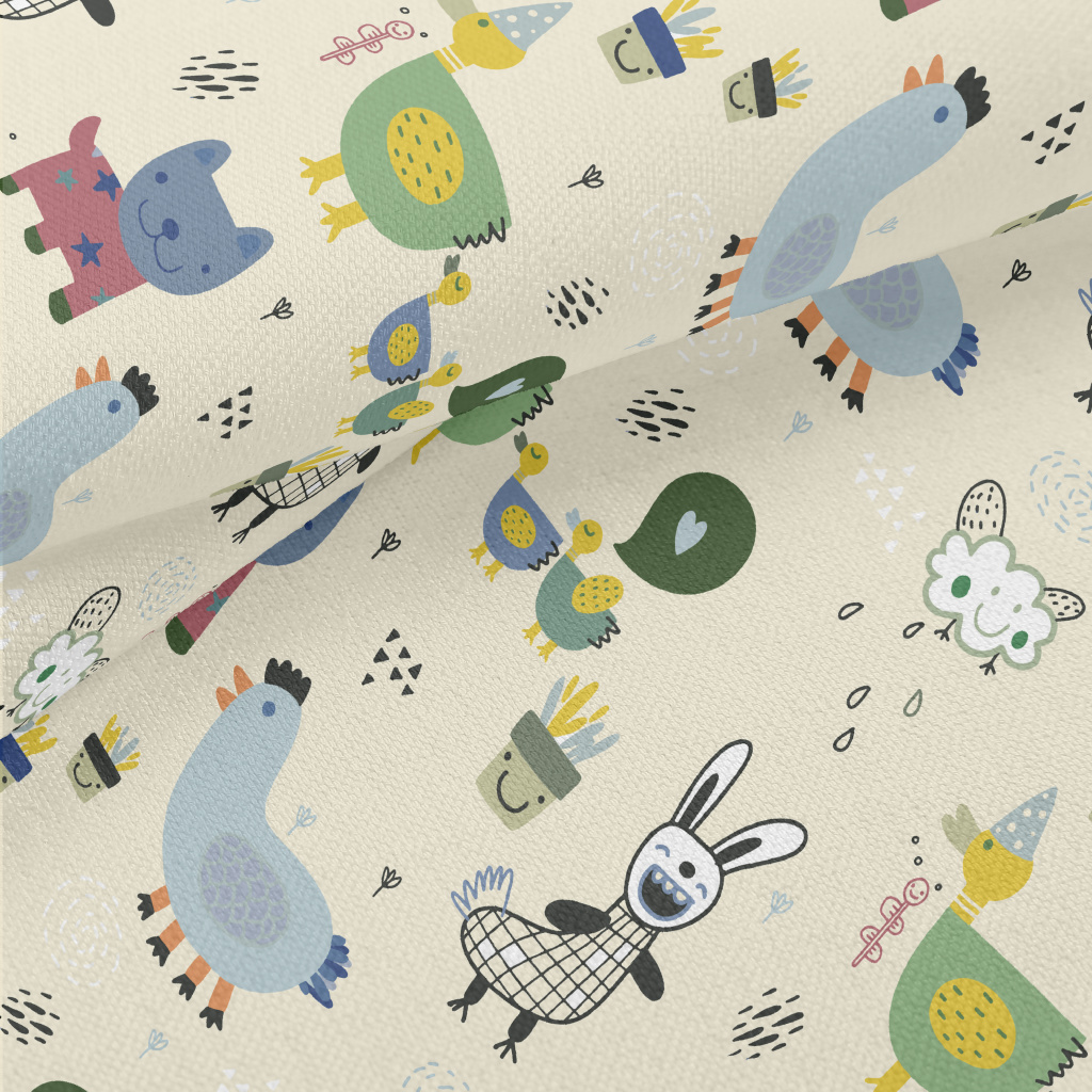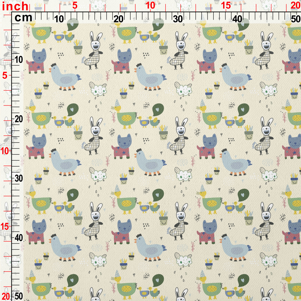 逗趣塗鴉動物竹節麻(幅寬150公分)