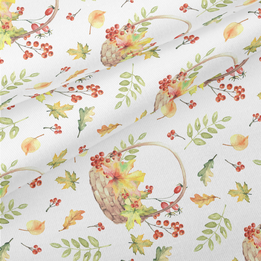 水彩莓果葉子籃仿棉布(幅寬150公分)