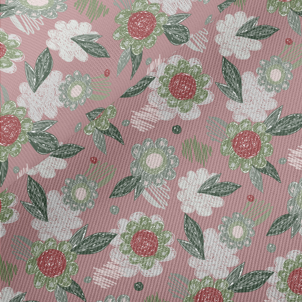 蠟筆素描花朵斜紋布(幅寬150公分)