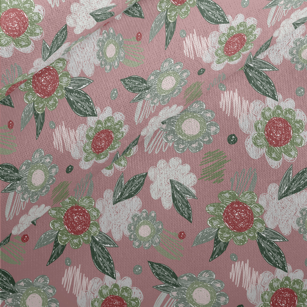蠟筆素描花朵刷毛布(幅寬150公分)