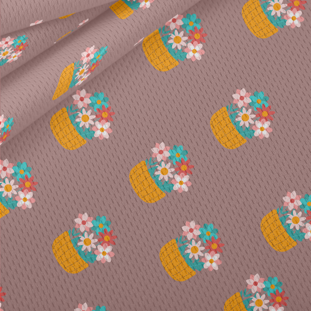 鮮豔花朵盆栽鳥眼布(幅寬160公分)