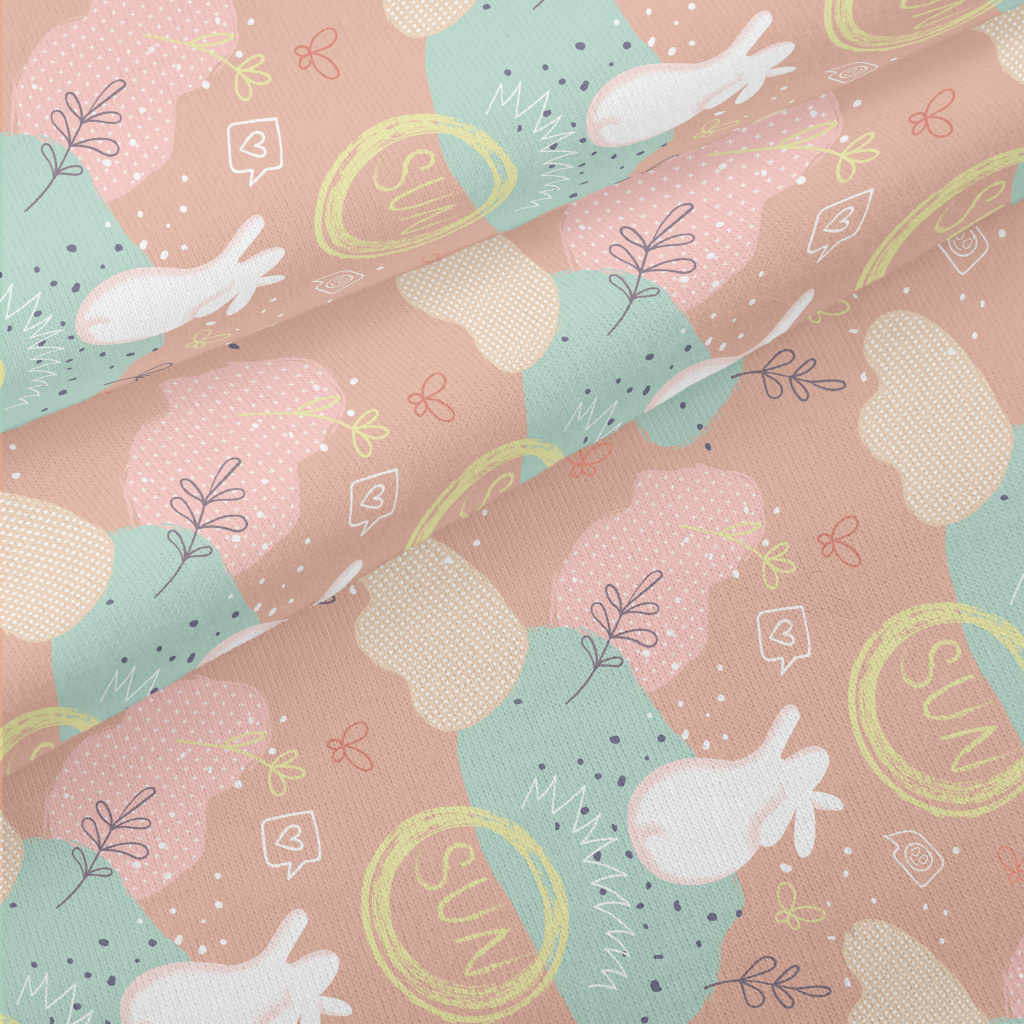 藝術塗鴉小白兔仿棉布(幅寬150公分)