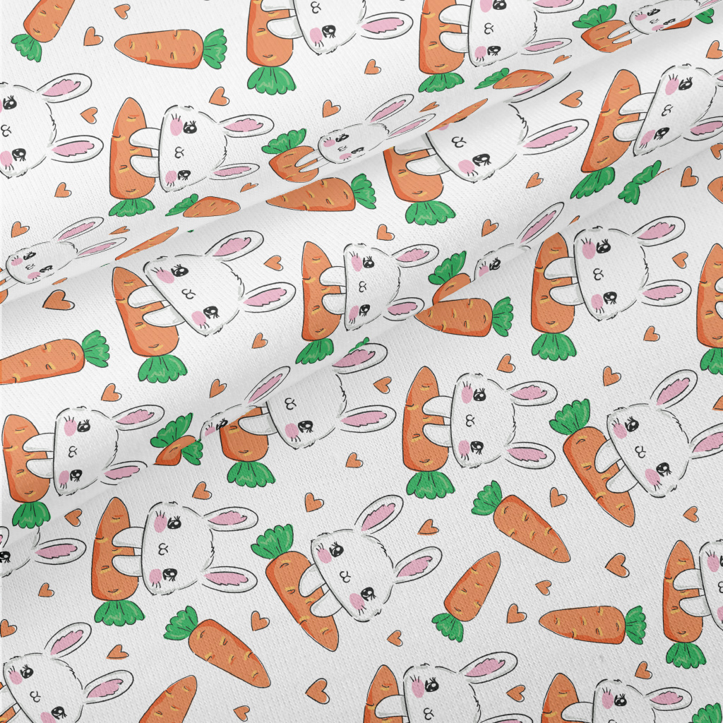 可愛白兔紅蘿蔔仿棉布(幅寬150公分)