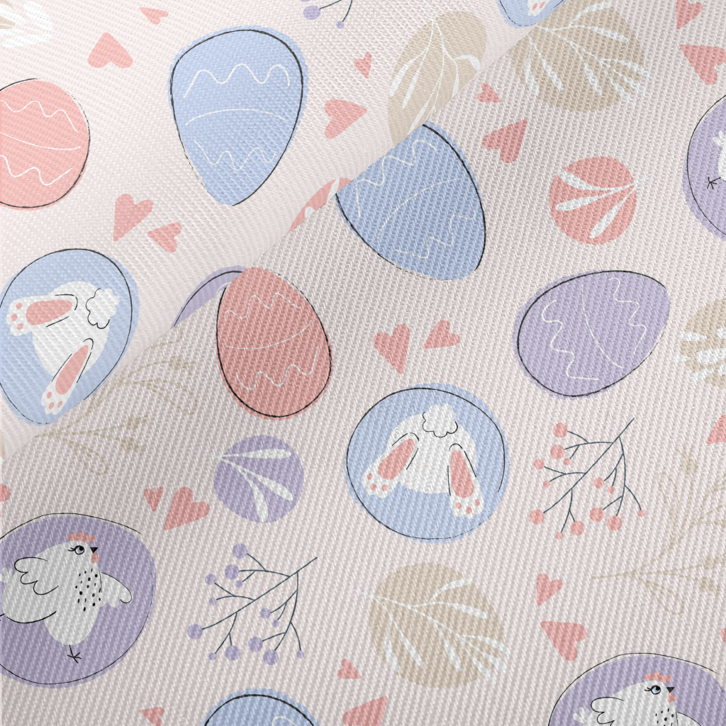 公雞兔子彩繪蛋斜紋布(幅寬150公分)