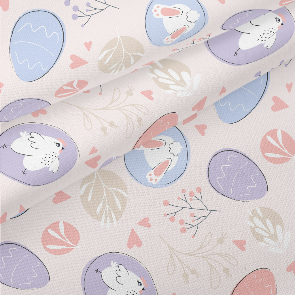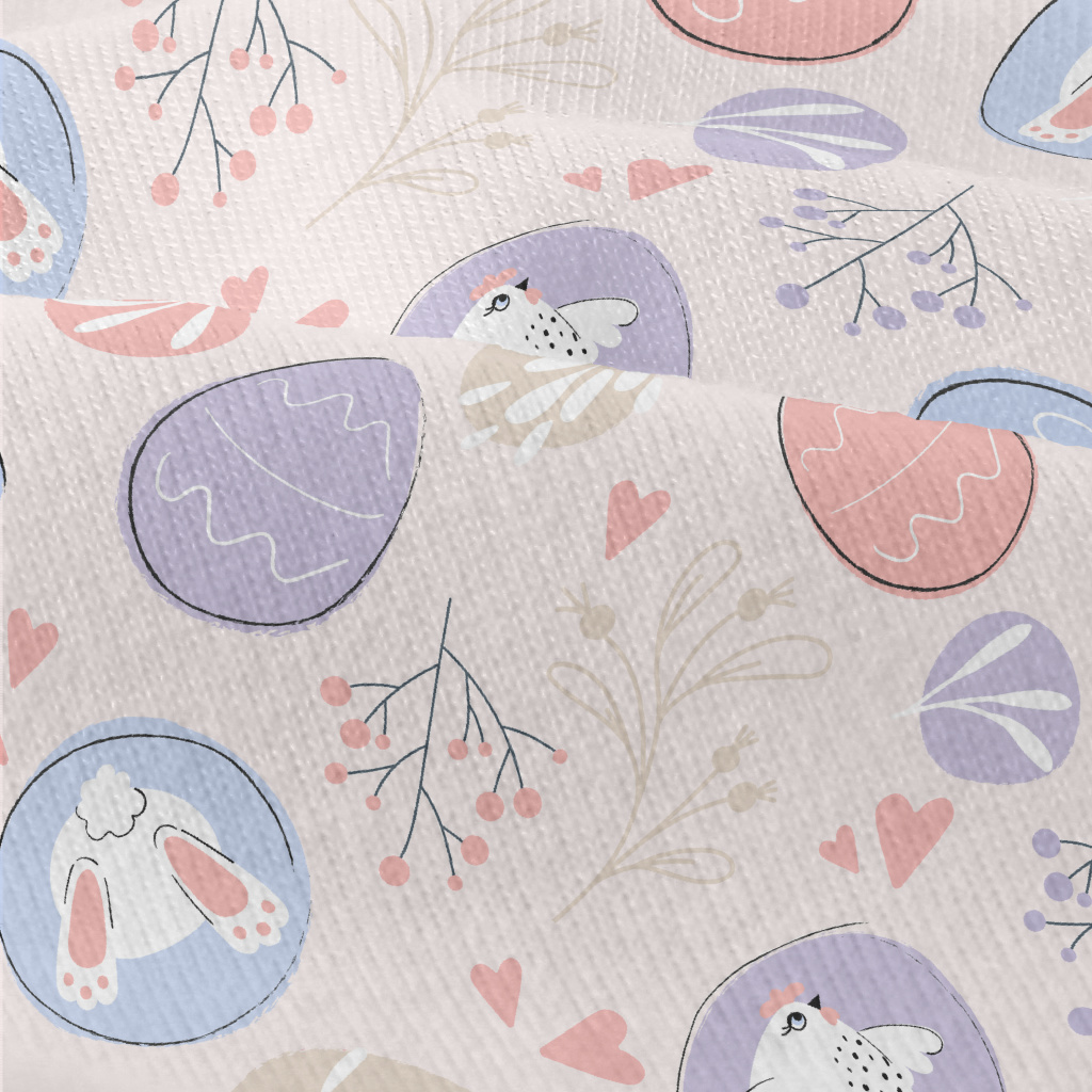 公雞兔子彩繪蛋仿棉布(幅寬150公分)