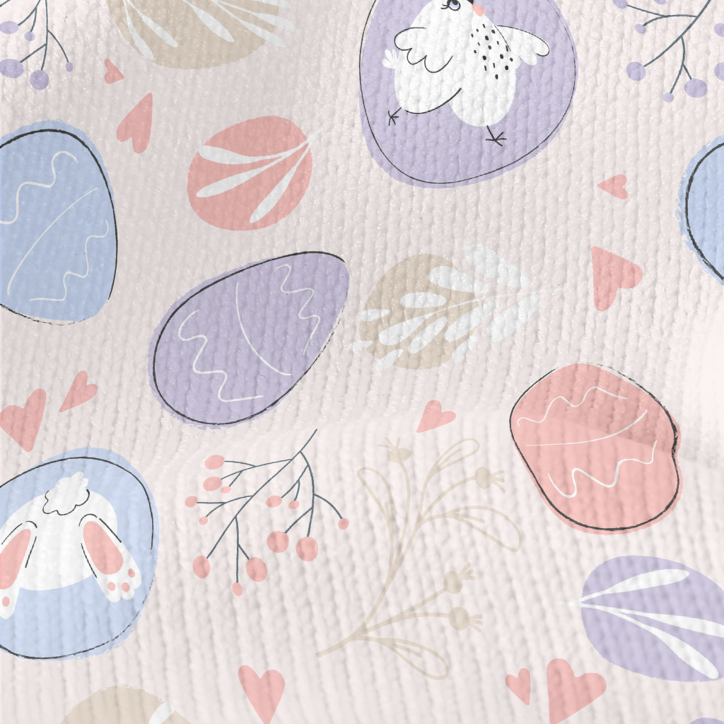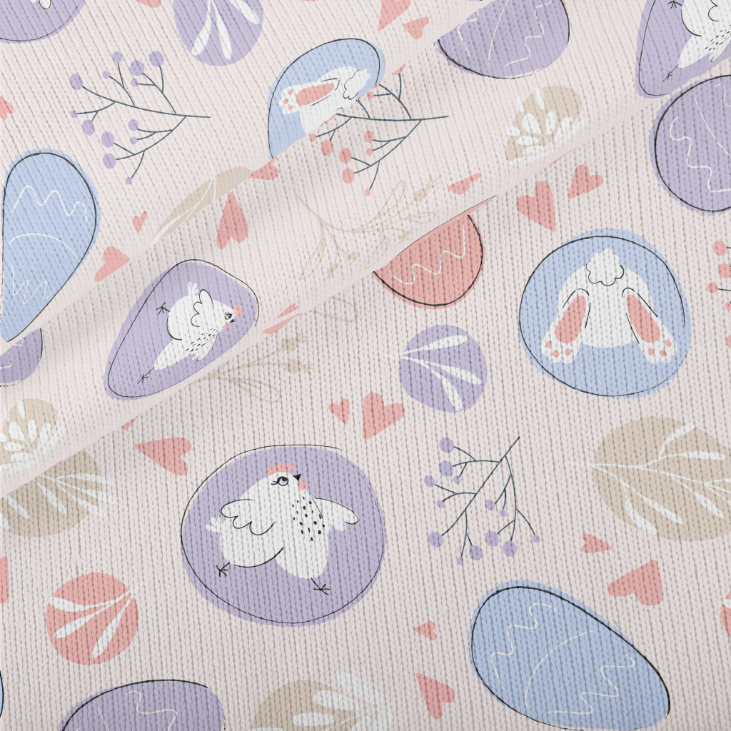 公雞兔子彩繪蛋仿毛衣布(幅寬150公分)