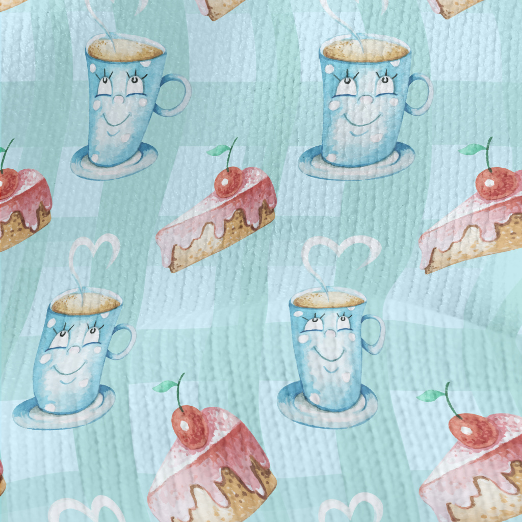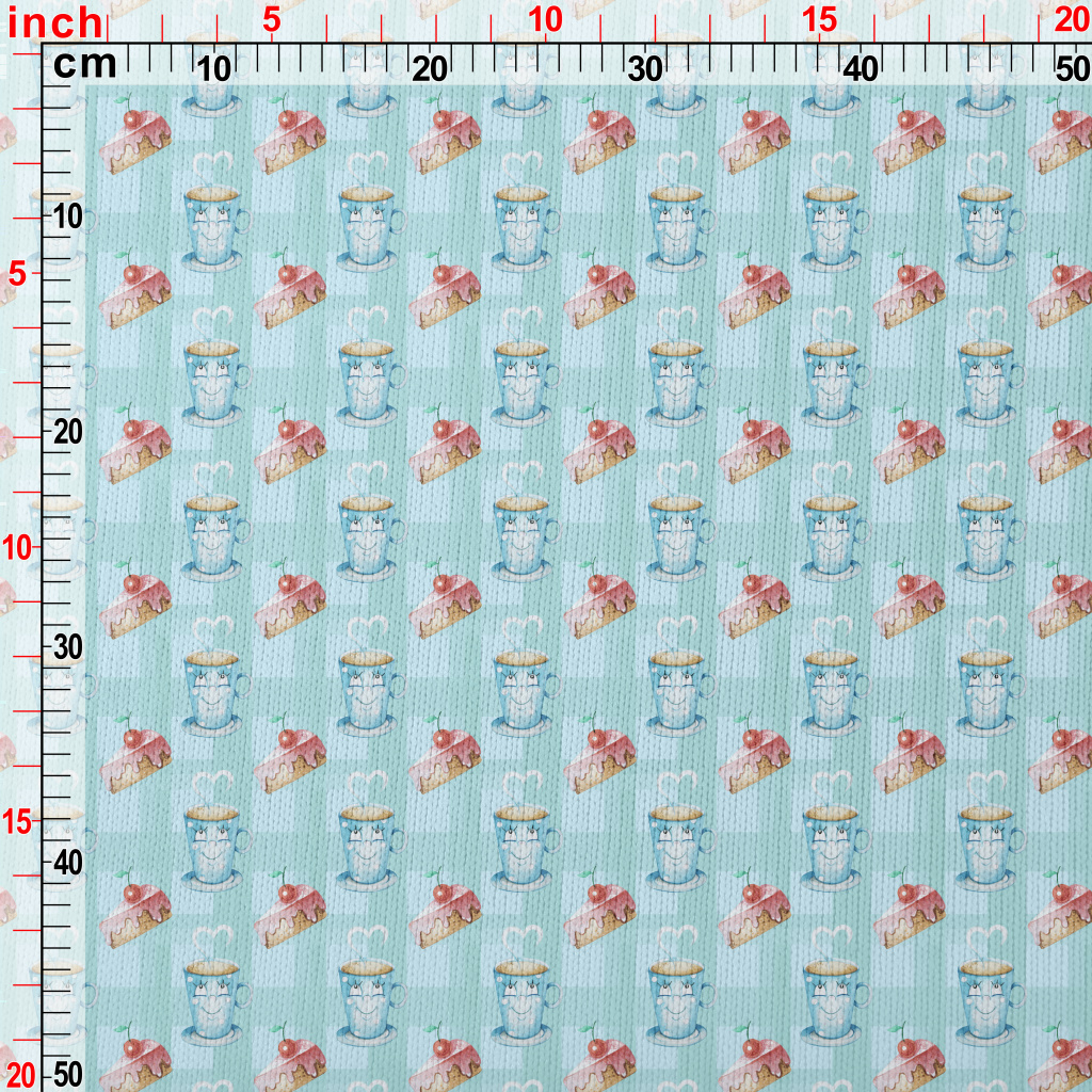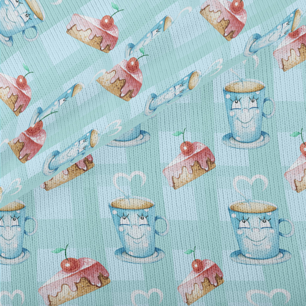 俏皮杯子櫻桃蛋糕仿毛衣布(幅寬150公分)