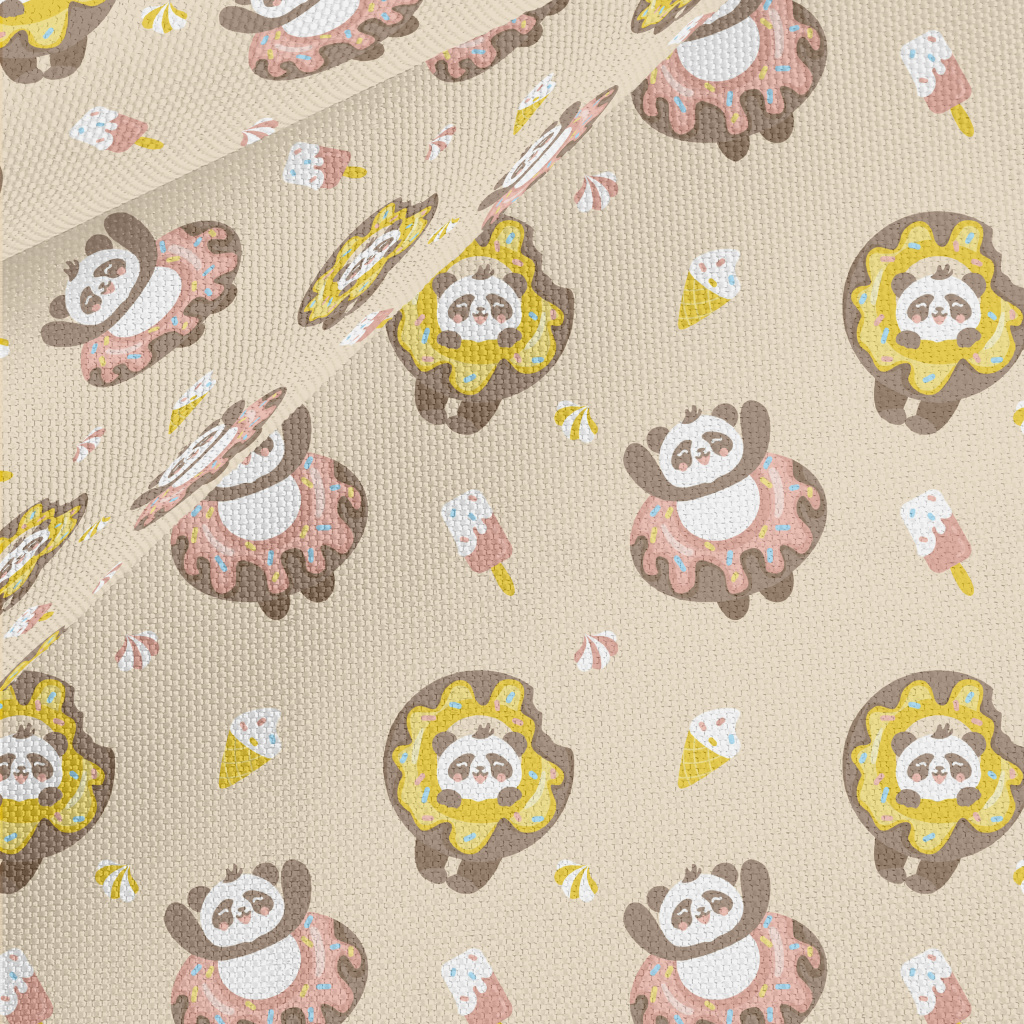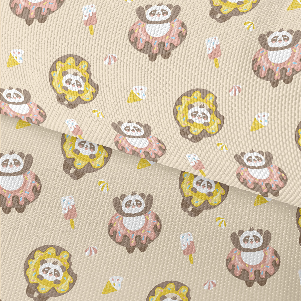 甜甜圈活潑貓熊牛津布(幅寬150公分)