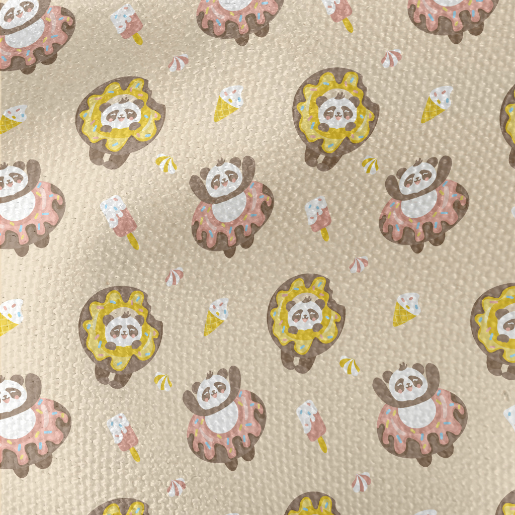 甜甜圈活潑貓熊帆布(幅寬150公分)