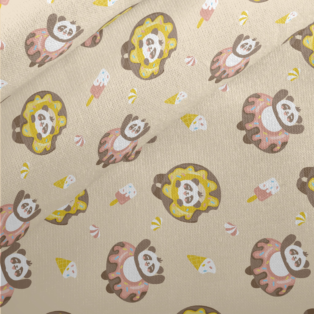 甜甜圈活潑貓熊刷毛布(幅寬150公分)