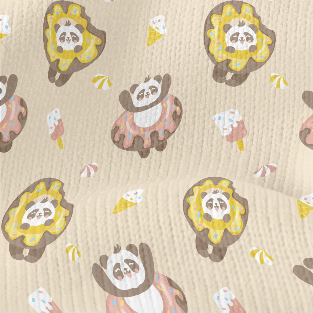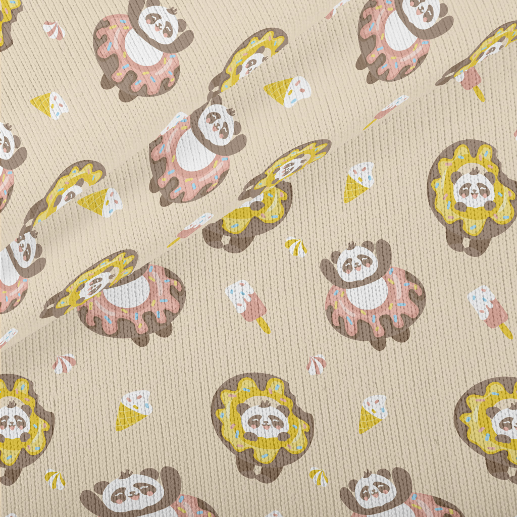 甜甜圈活潑貓熊仿毛衣布(幅寬150公分)
