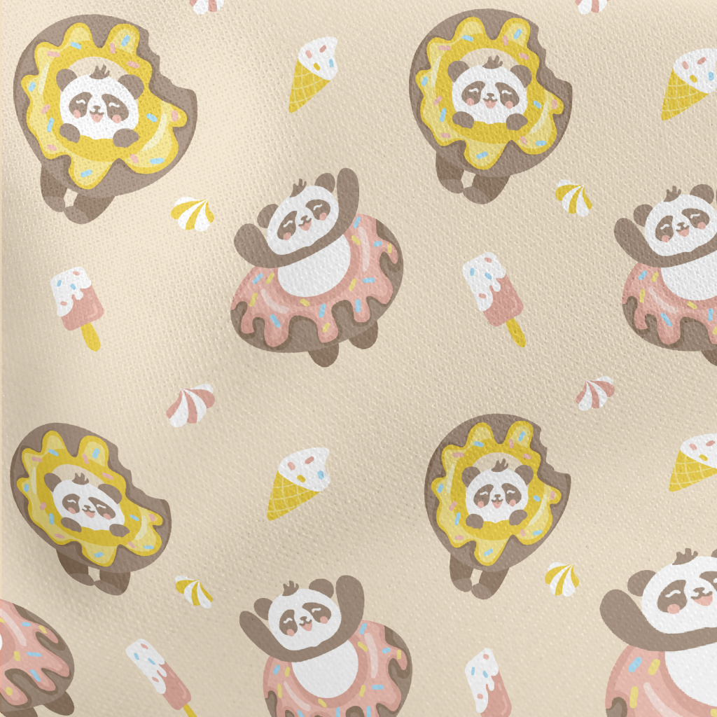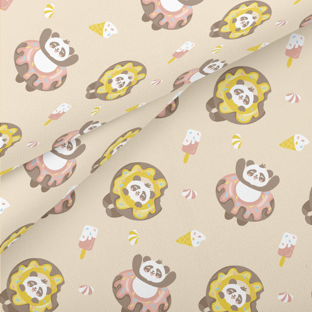 甜甜圈活潑貓熊薄棉布(幅寬150公分)