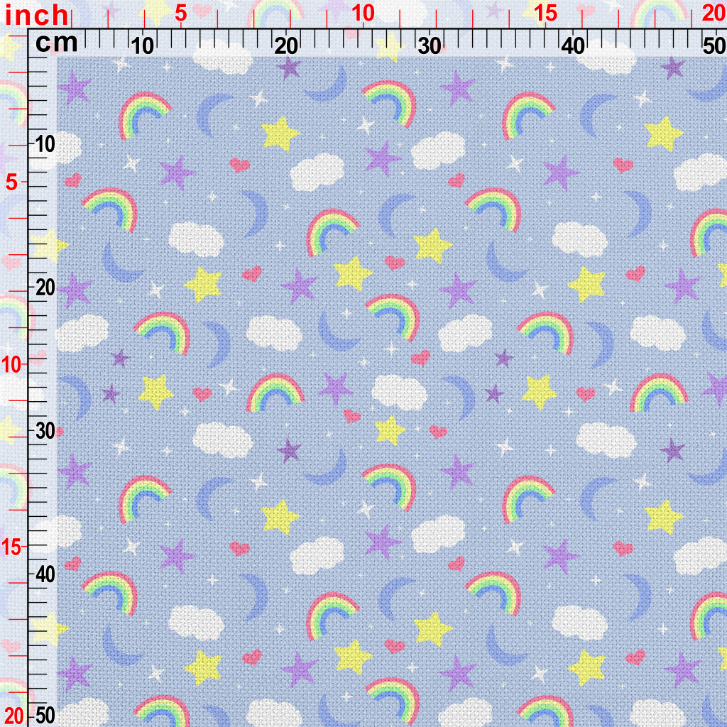 閃亮星月亮雲朵麻布(幅寬150公分)