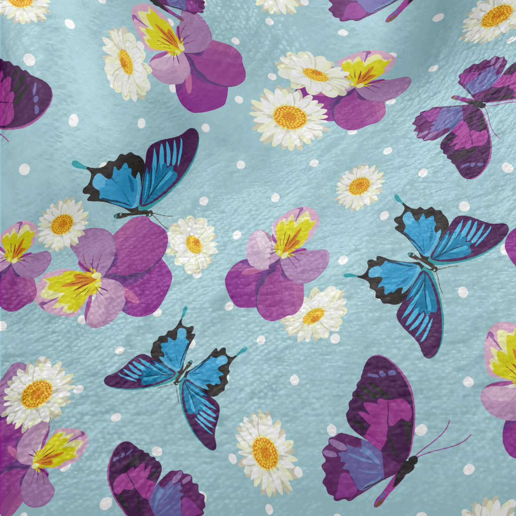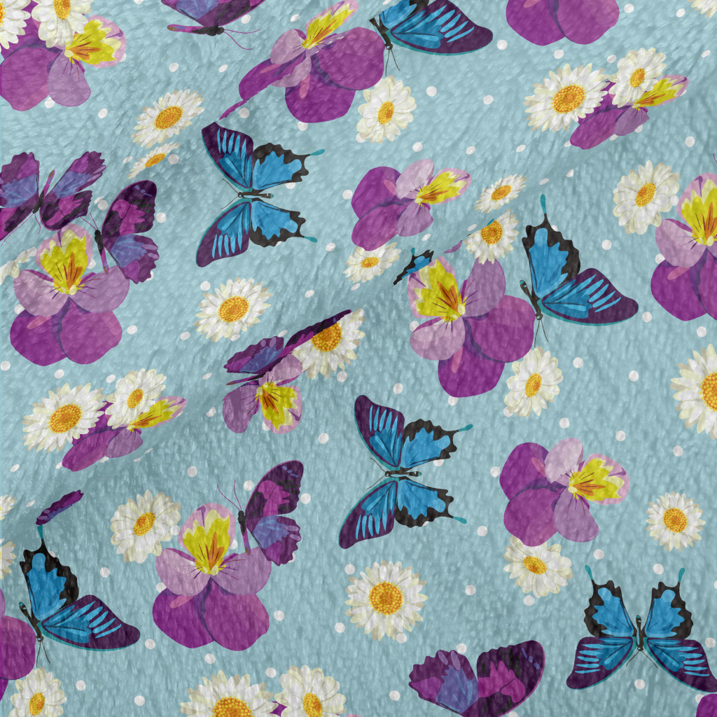 美麗蝴蝶花朵法蘭絨(幅寬150公分)