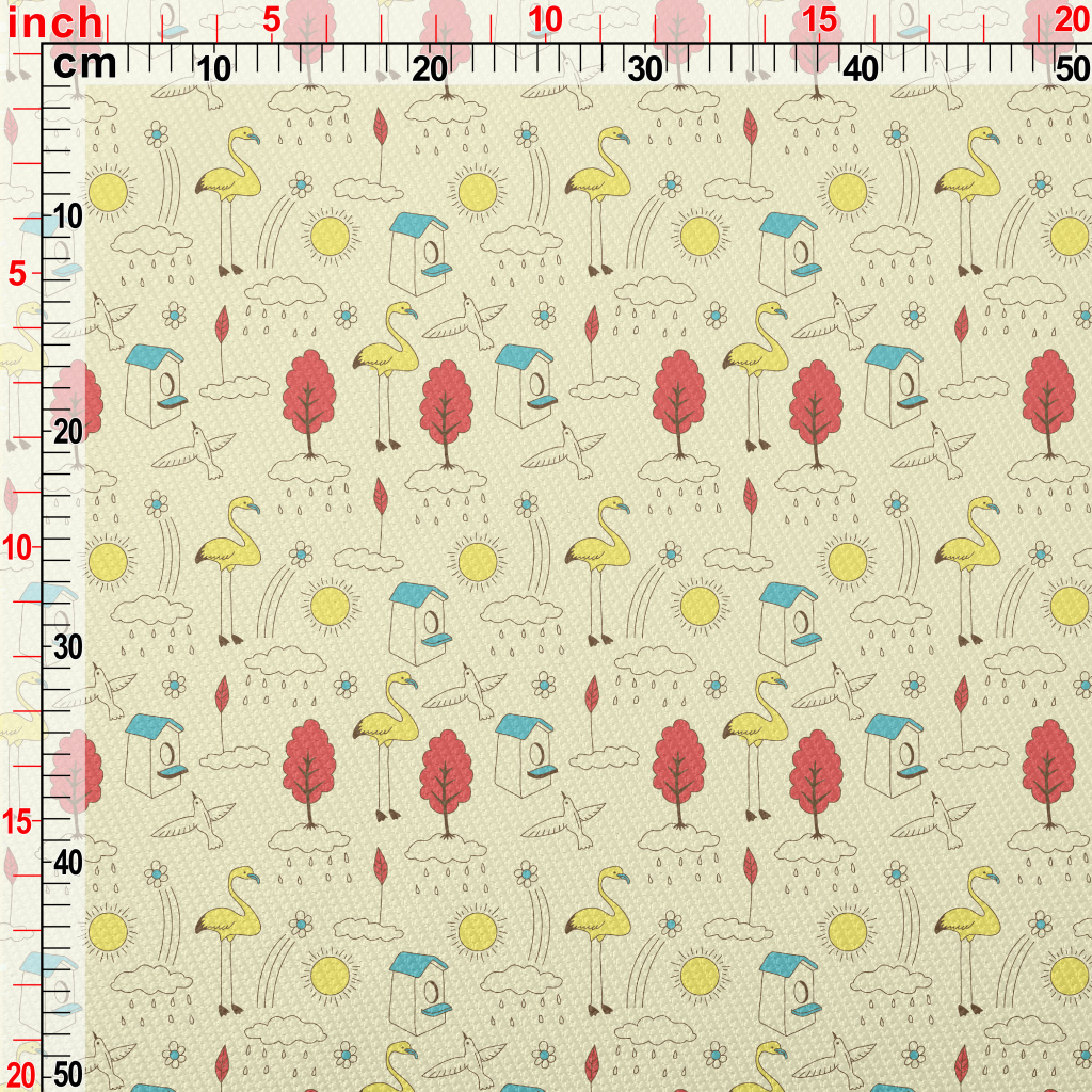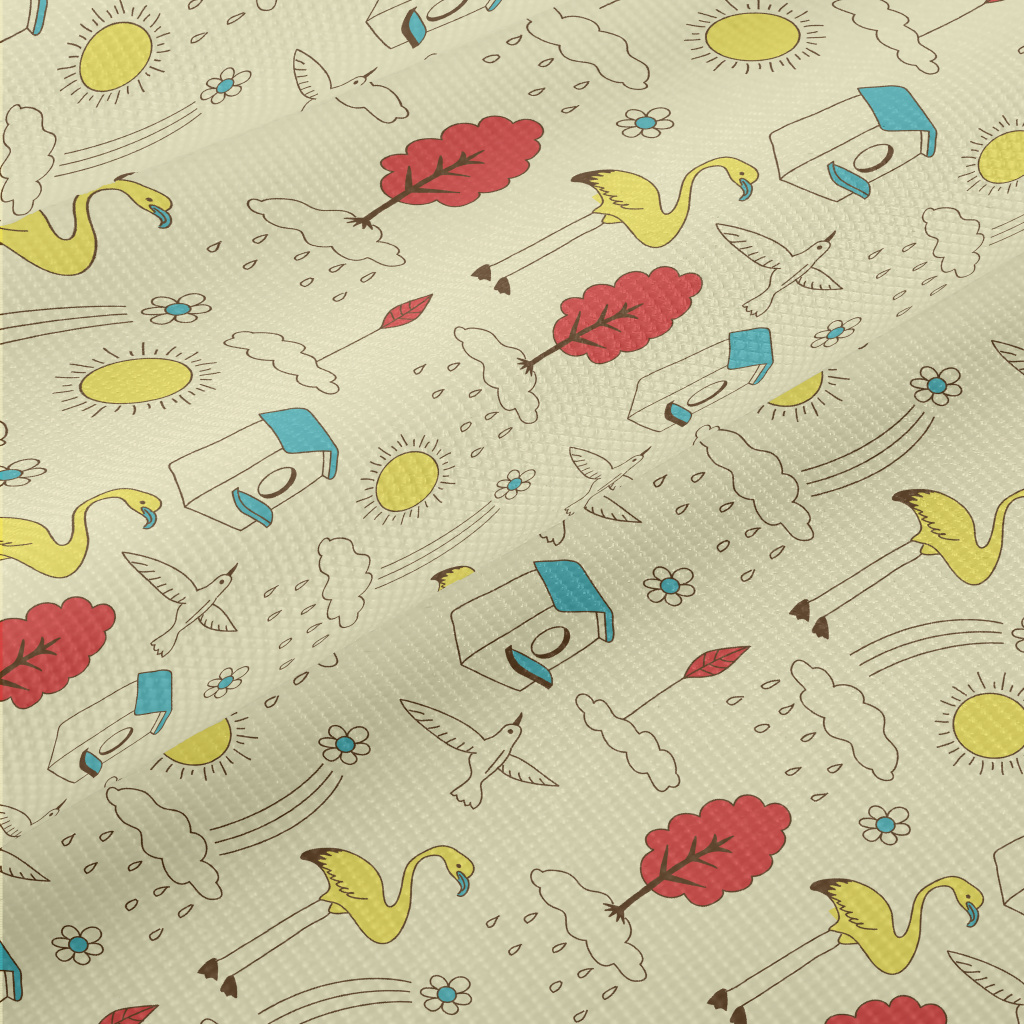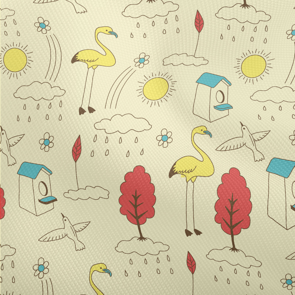線條塗鴉鳥類雙斜布(幅寬150公分)