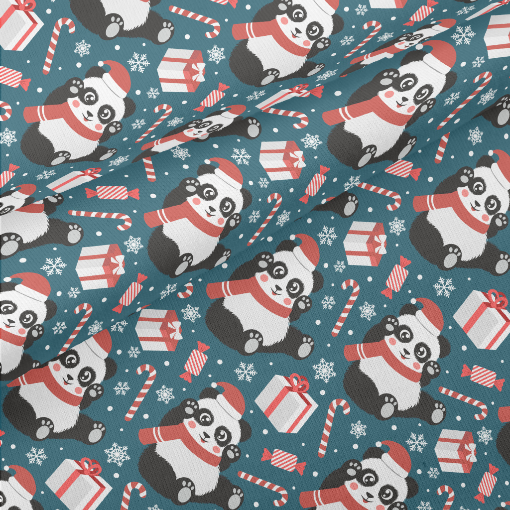 可愛聖誕貓熊仿棉布(幅寬150公分)