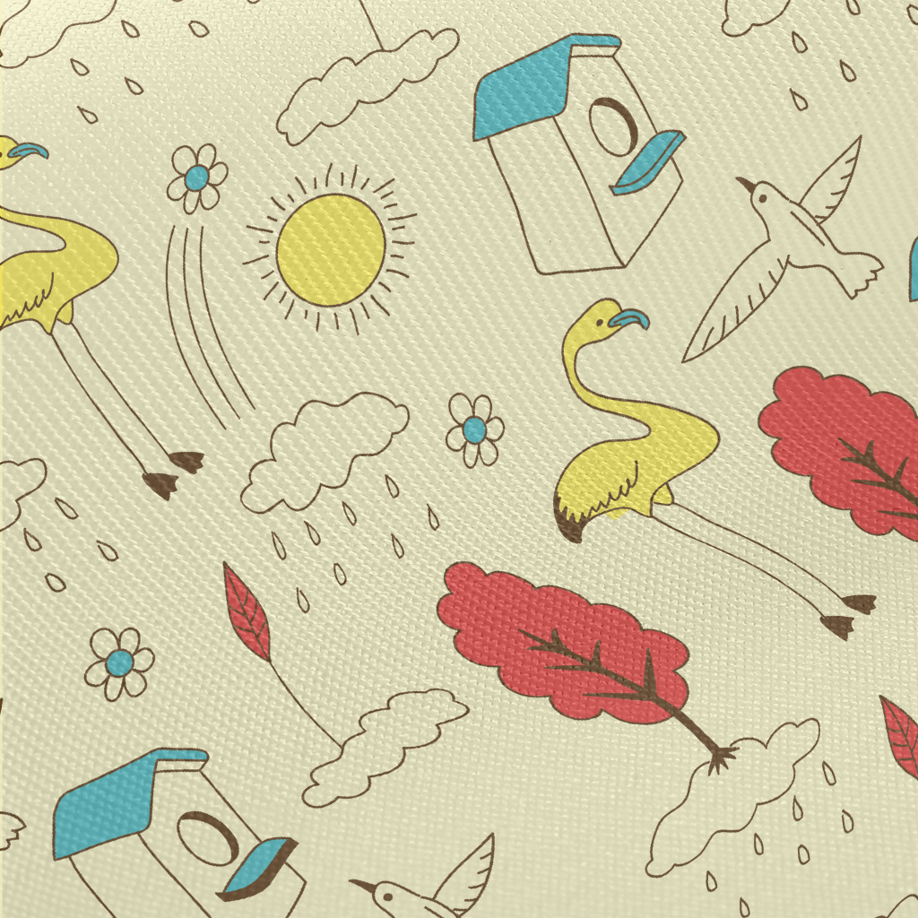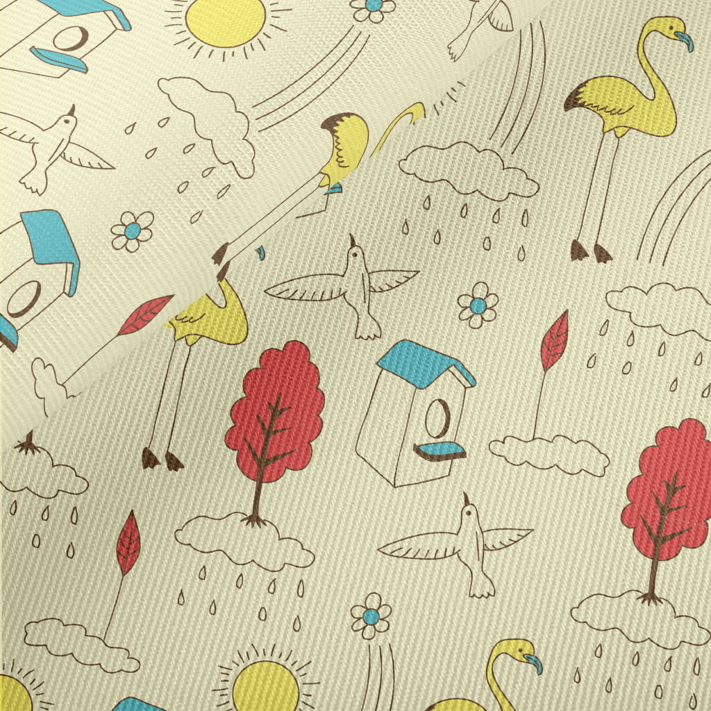 線條塗鴉鳥類厚棉布(幅寬150公分)